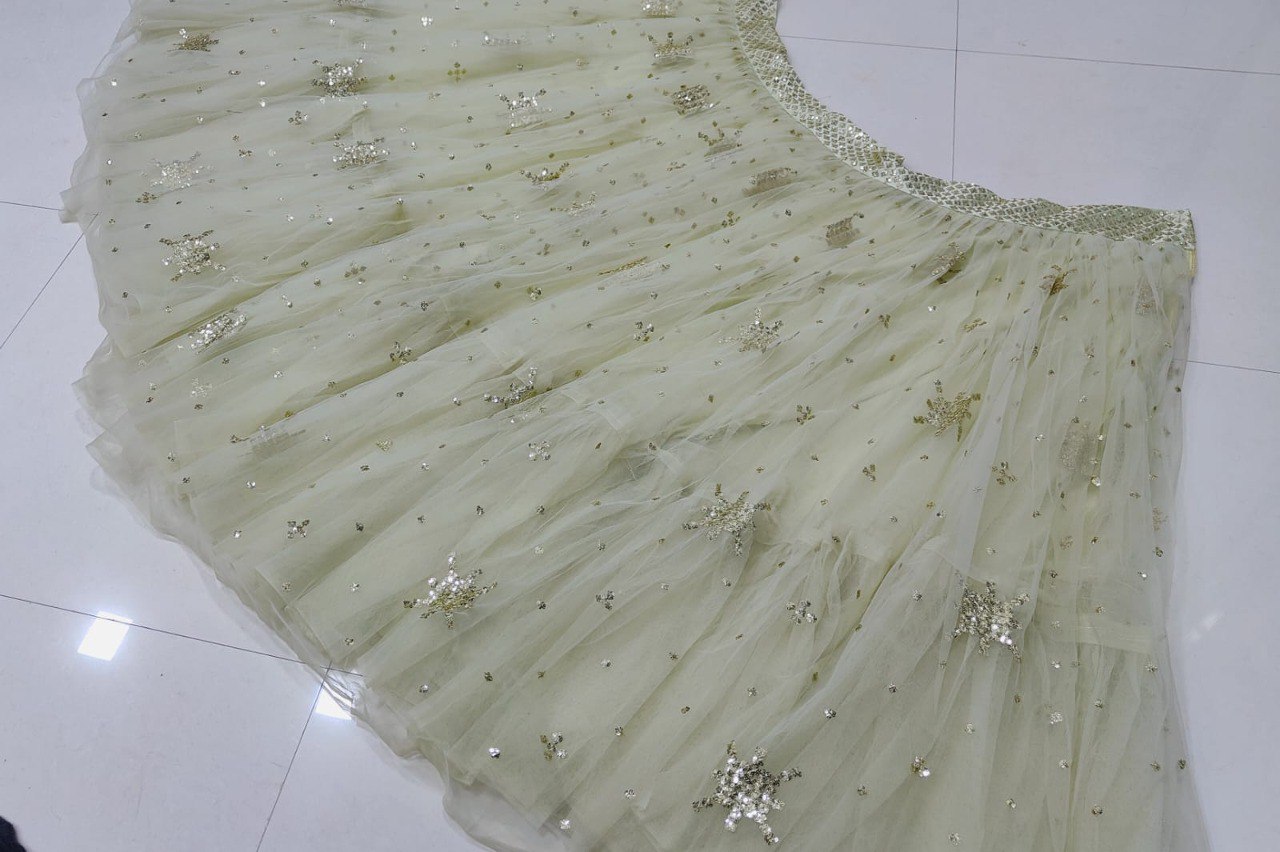 LEHENGA(BOTTOM)FABRIC:- NETINNER:- MICRO FABRICWORK:- 3MM SEQUINS WITH JARI EMBROIDERY WORKSTITCH:- SEMI STITCHED WITH CANCAN AND CANVASSIZE:- 41 TO 42 HEIGHT AND 42 WAIST FLAIR:- 3.80 METER TO 4.00 METERADDITIONAL:- HEAVY NET FLAIR ATTACHED UNDER THE FIRST LAIR OF EMBROIDERY WORK.CHOLI(TOP)FABRIC:- SATIN SILKSIZE:- 0.80 METER FABRICWORK:- 3MM SEQUINS WITH JARI EMBROIDERY WORK STITCH:- UN STITCHED FABRICDUPATTAFABRIC:- NETWORK:- 3MM SEQUINS WITH JARI EMBROIDERY WORK SIZE:- 2.25 METER DUPATTASTITCH:- FULL STITCHEDADDITIONALWASH CARE: - DRY CLEAN ONLYCOLOR: - PRODUCT COLOR MAY SLIGHTLY VARY DUE TO PHOTOGRAPHIC LIGHTNING SOURCES OR YOUR DEVICE DISPLAY SETTINGSTHESE ARE MADE TO ORDER DESIGNER STYLES, HENCE EXPECT A SLIGHT VARIATION FROM THE IMAGE DISPLAYEDIN THE BOX 1 PIECE LEHENGA 1 PIECE DUPATTA 1 PIECE BLOUSE FABRIC.