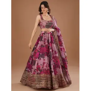 Womens Purple Georgette Lehariya...