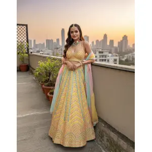 Yellow Embroidered Georgette Lehenga Set