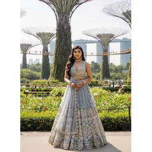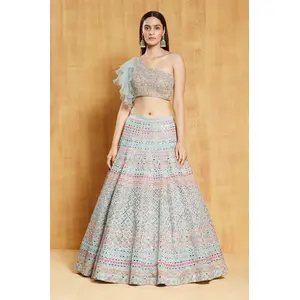 Grey Embroidered Net Lehenga Set