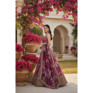 Wine sequins embroidered semi velvet...
