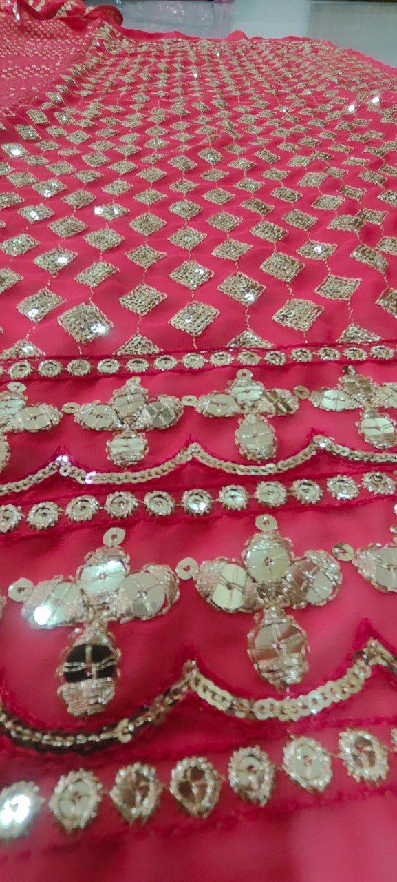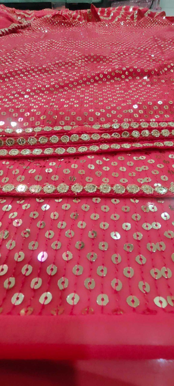 Red Sequin Embroidered Faux Georgette Lehenga Set