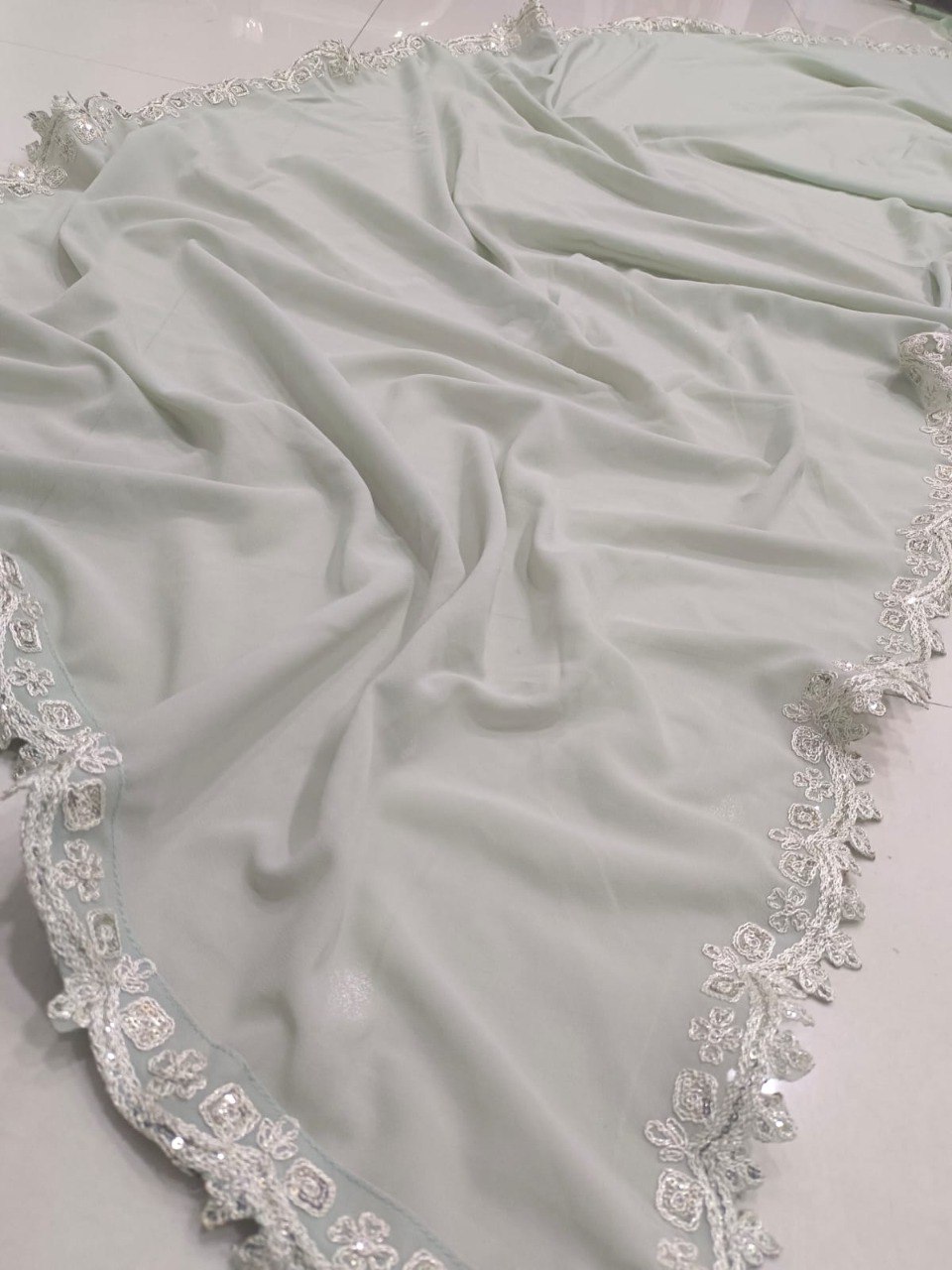 Sea Green Crush Work Georgette Lehenga Set