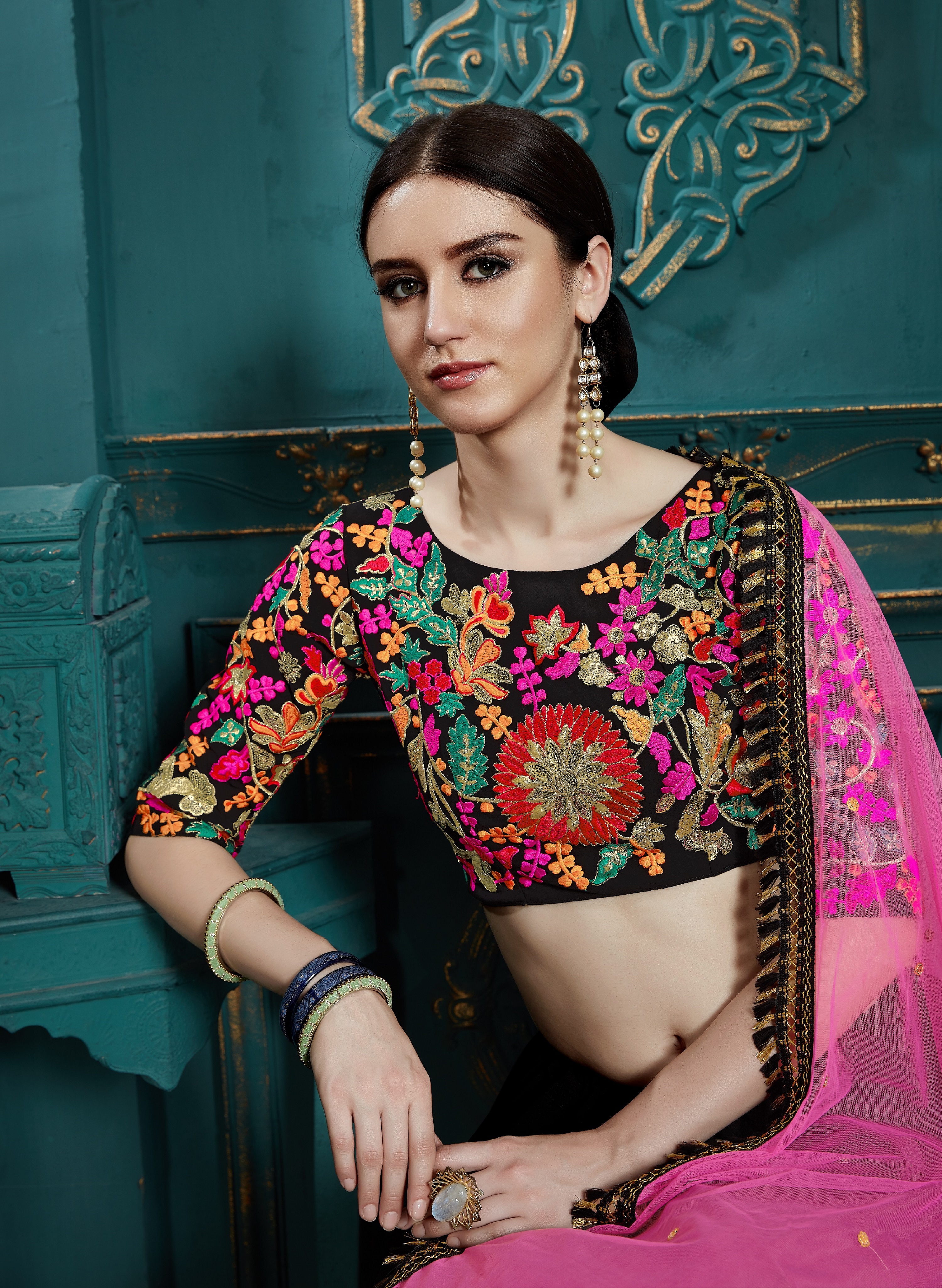Elevate your ethnic look with this black faux georgette lehenga featuring thread embroidery work. Designed for festive occasions and celebrations, it offers a graceful flow and timeless appeal.Crafted from lightweight faux georgette fabric with a semi-stitched finish, this lehenga ensures comfort and easy customization. Dry clean recommended.