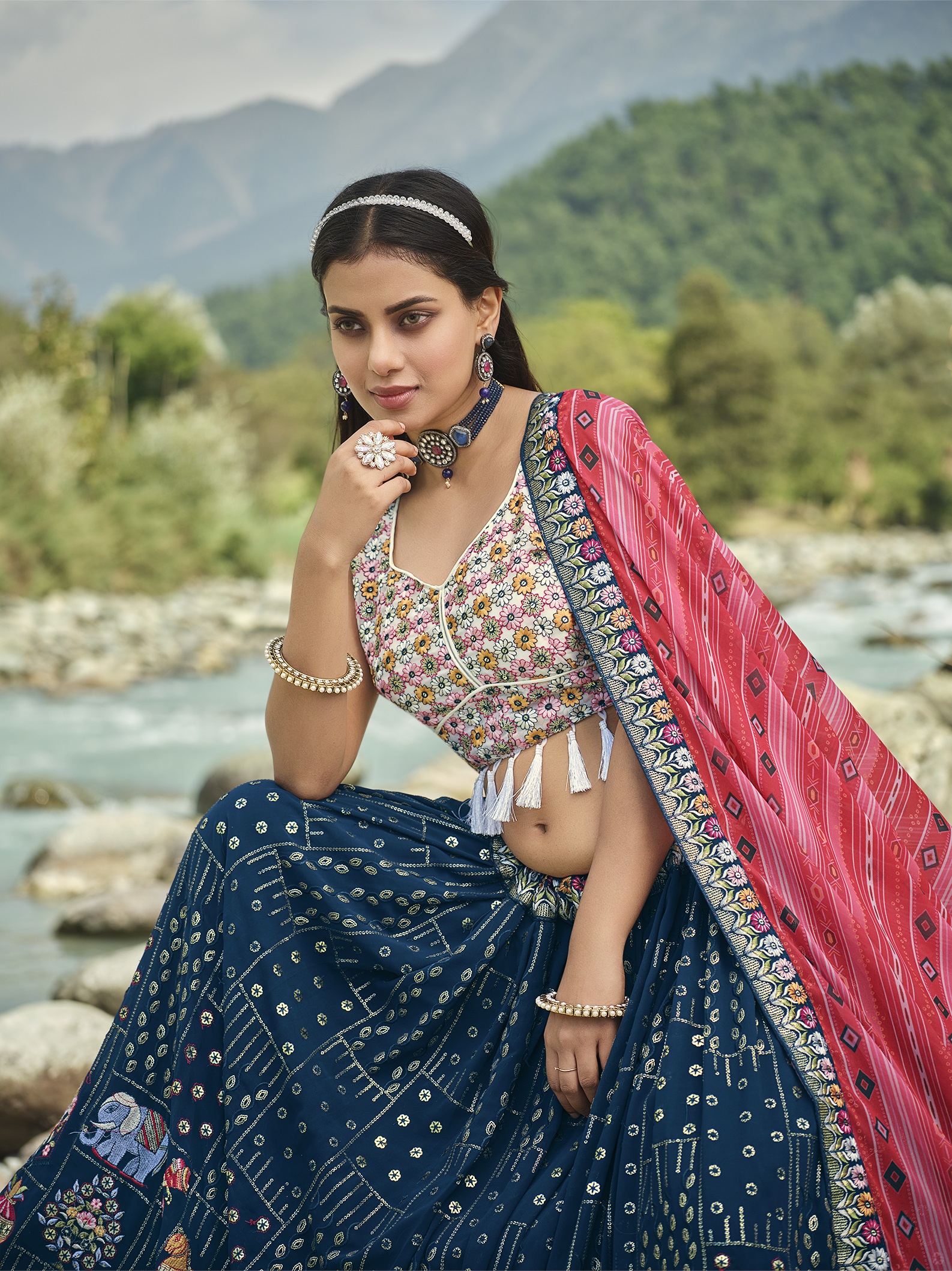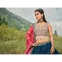 Elevate your ethnic look with this blue faux georgette lehenga featuring thread embroidery work. Designed for festive occasions and celebrations, it offers a graceful flow and timeless appeal.Crafted from lightweight faux georgette fabric with a semi-stitched finish, this lehenga ensures comfort and easy customization. Dry clean recommended.