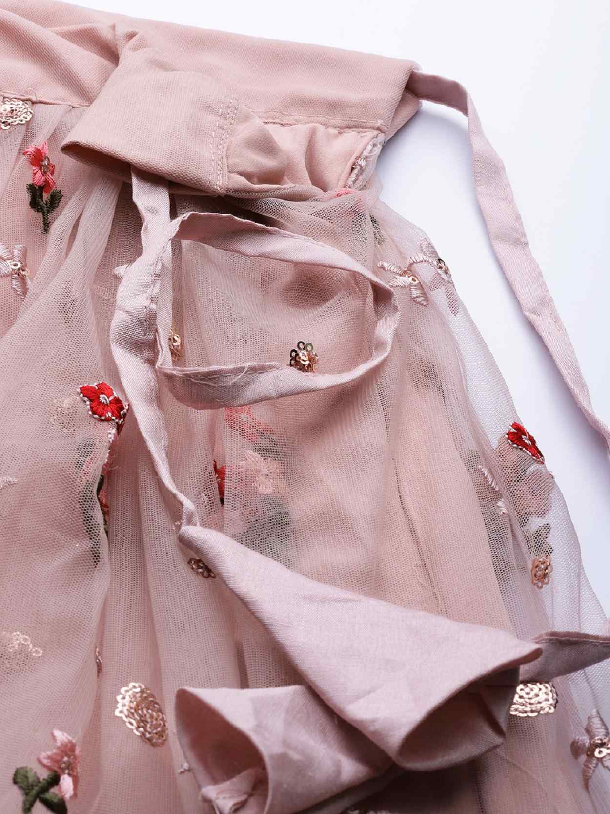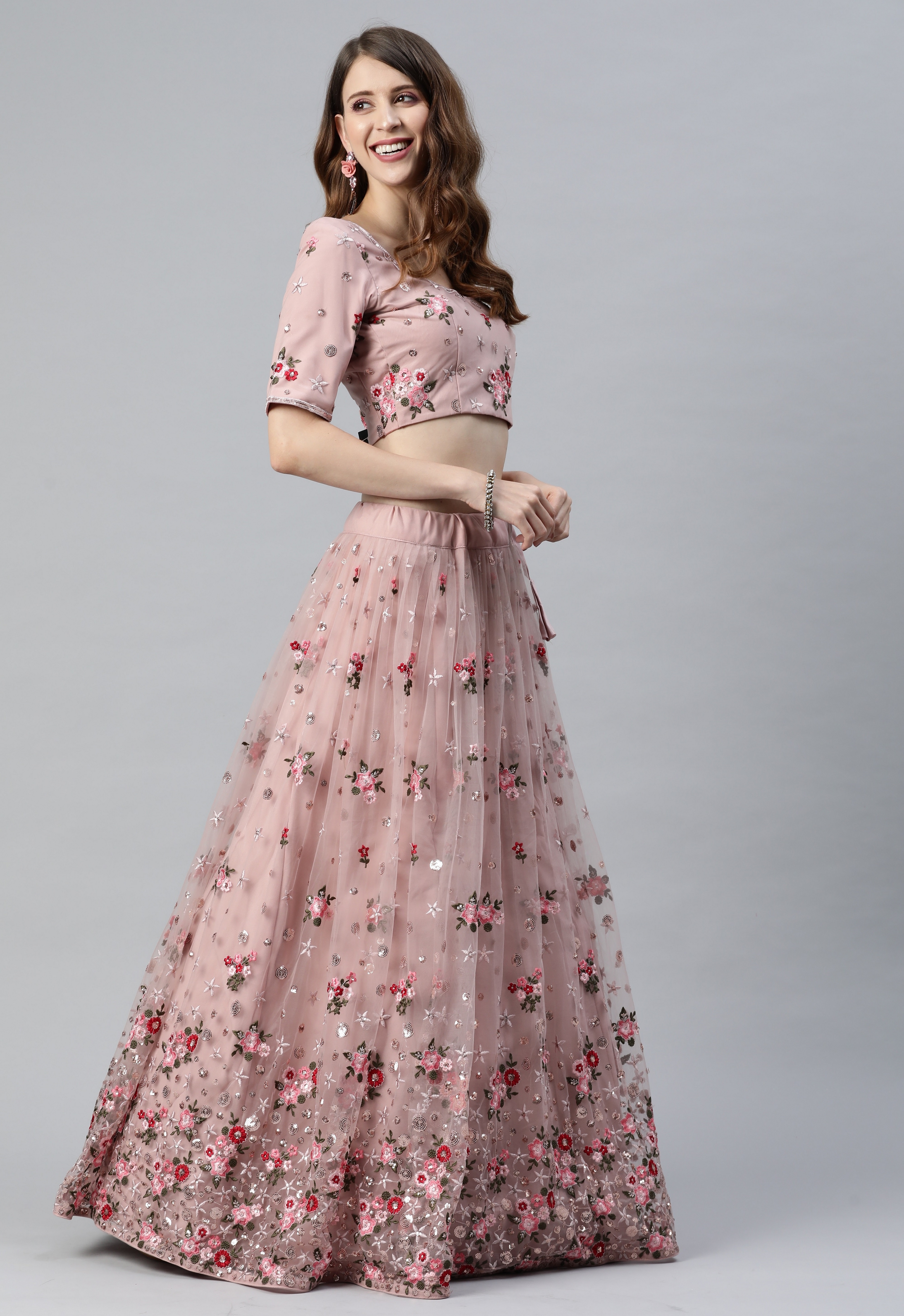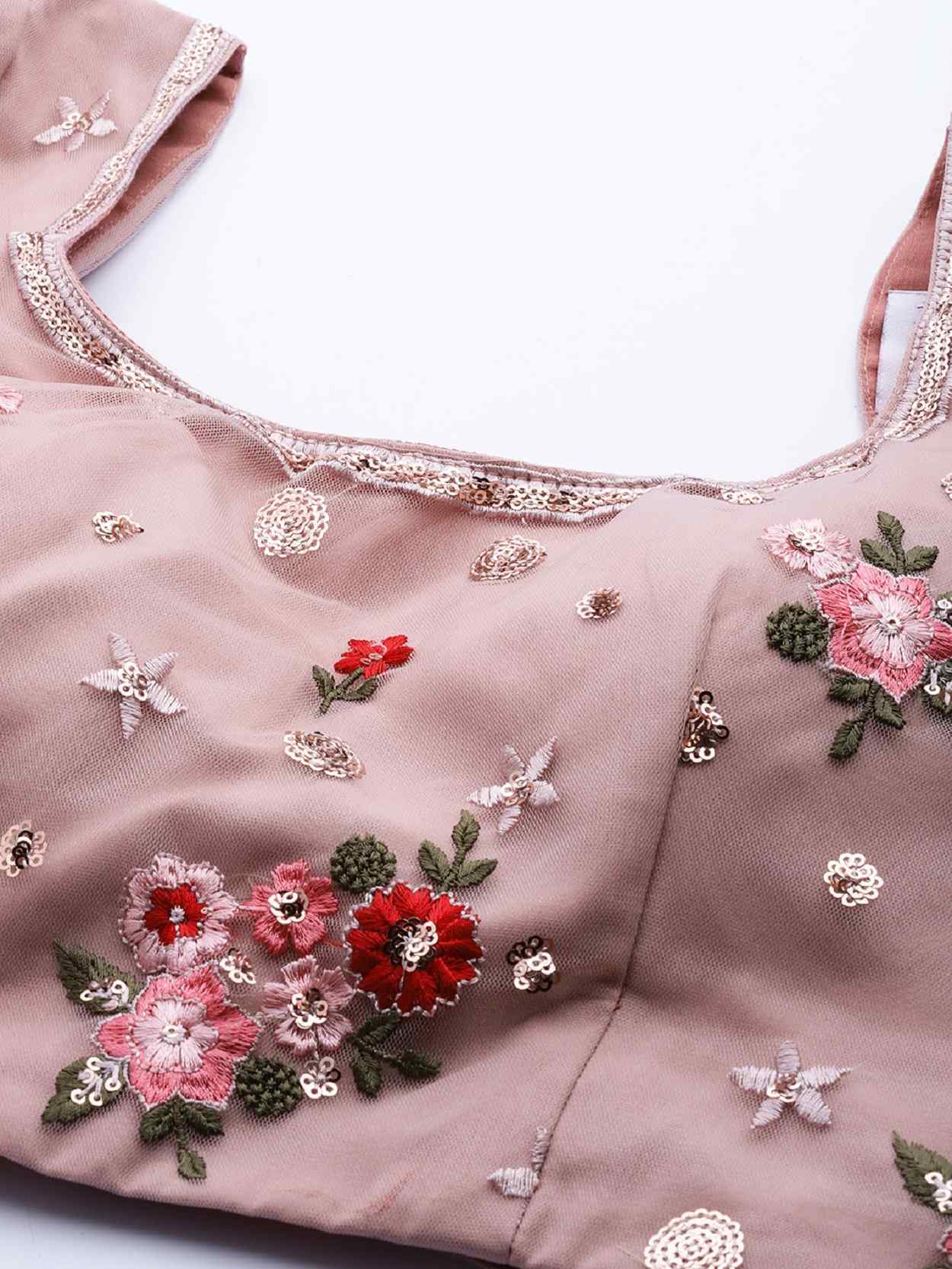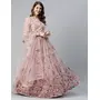 Womens Dusty Pink Net Thread Embroidery Lehenga Set