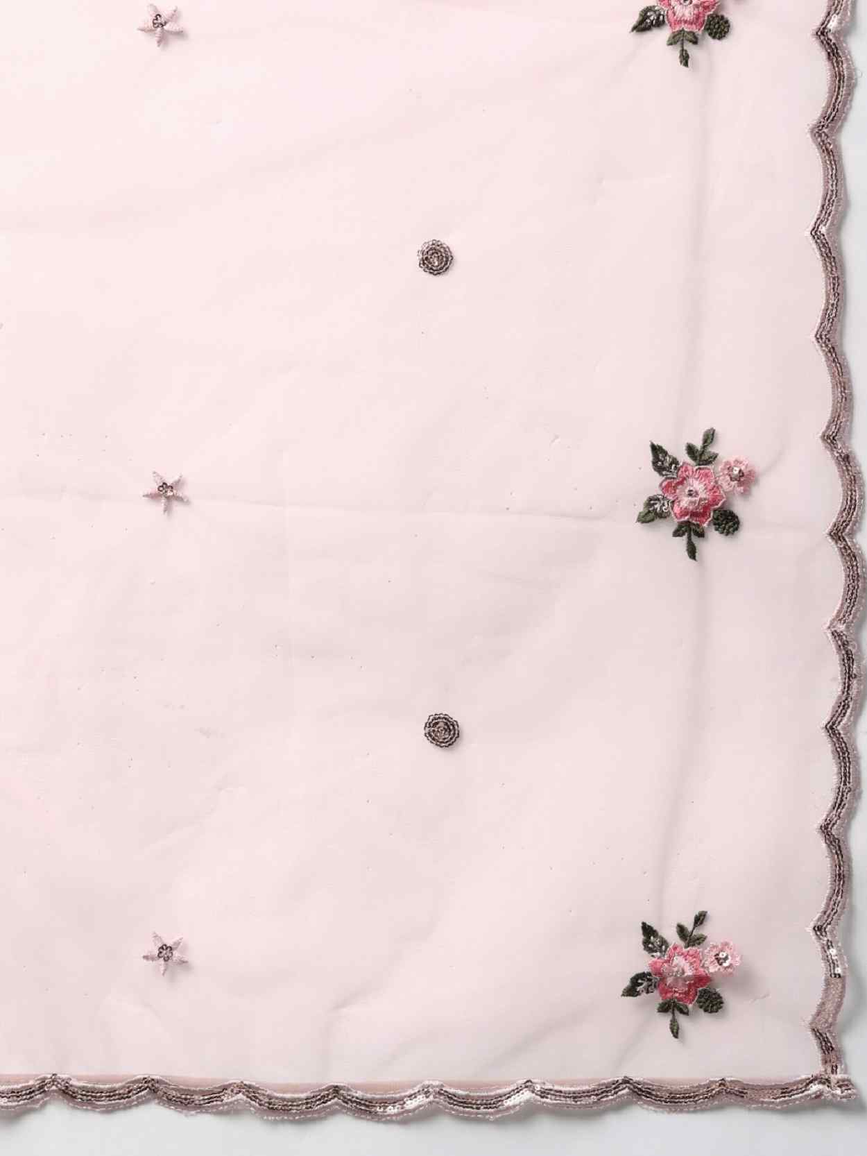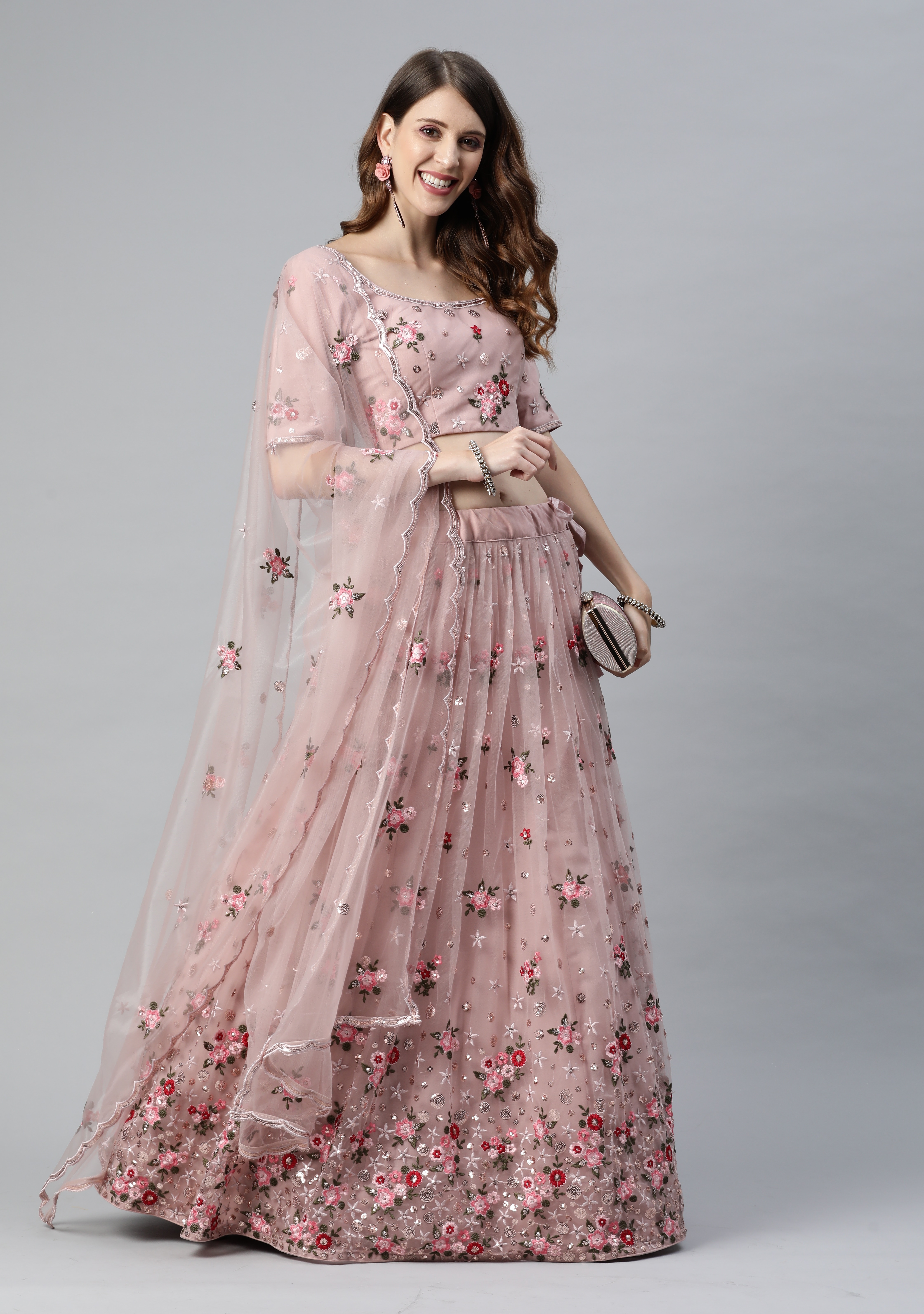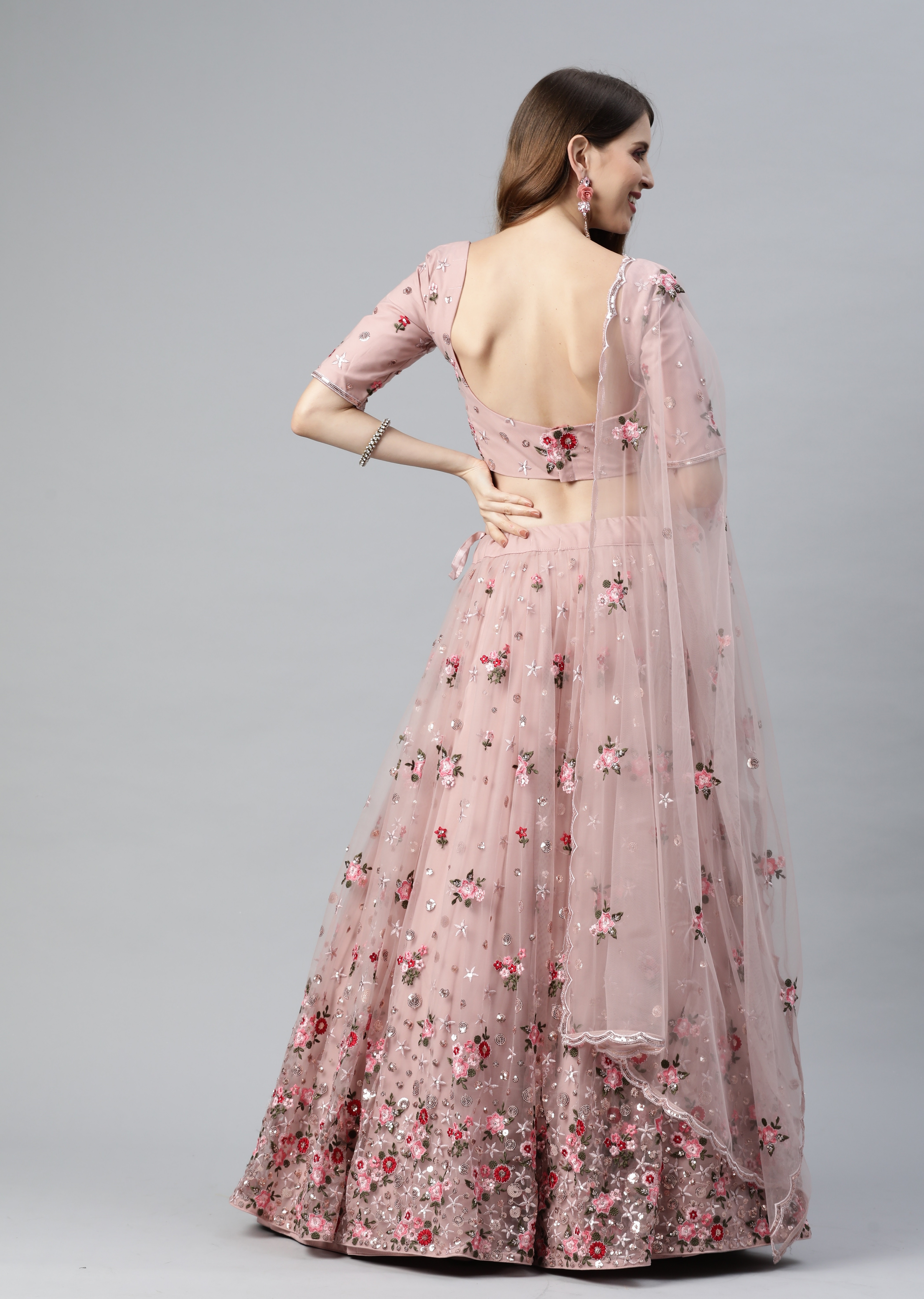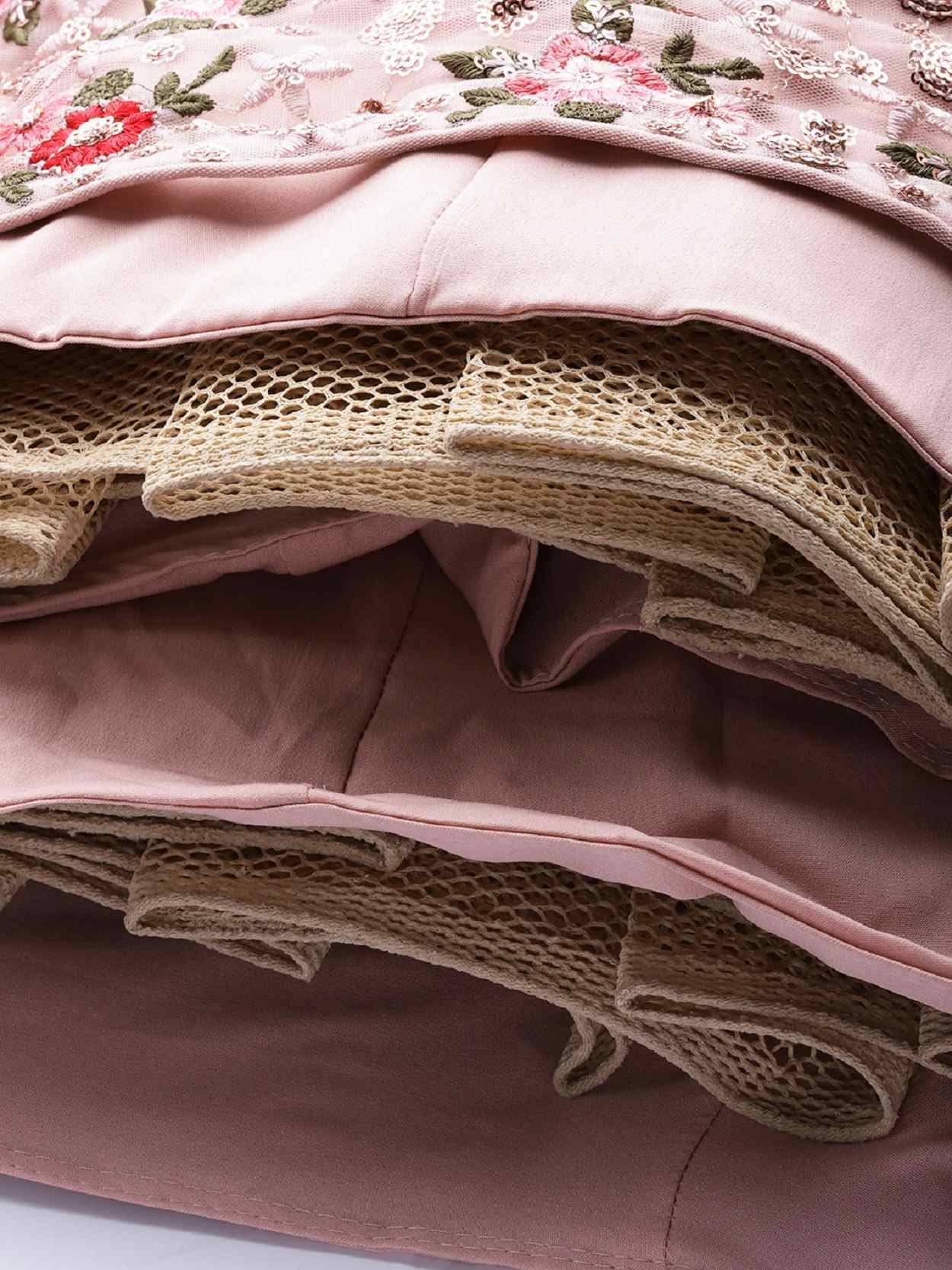 Womens Dusty Pink Net Thread Embroidery Lehenga Set