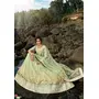 Elevate your ethnic look with this green net lehenga featuring sequience work work. Designed for festive occasions and celebrations, it offers a graceful flow and timeless appeal.Crafted from lightweight net fabric with a semi-stitched finish, this lehenga ensures comfort and easy customization. Dry clean recommended.