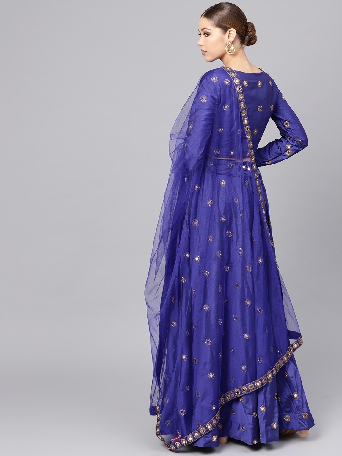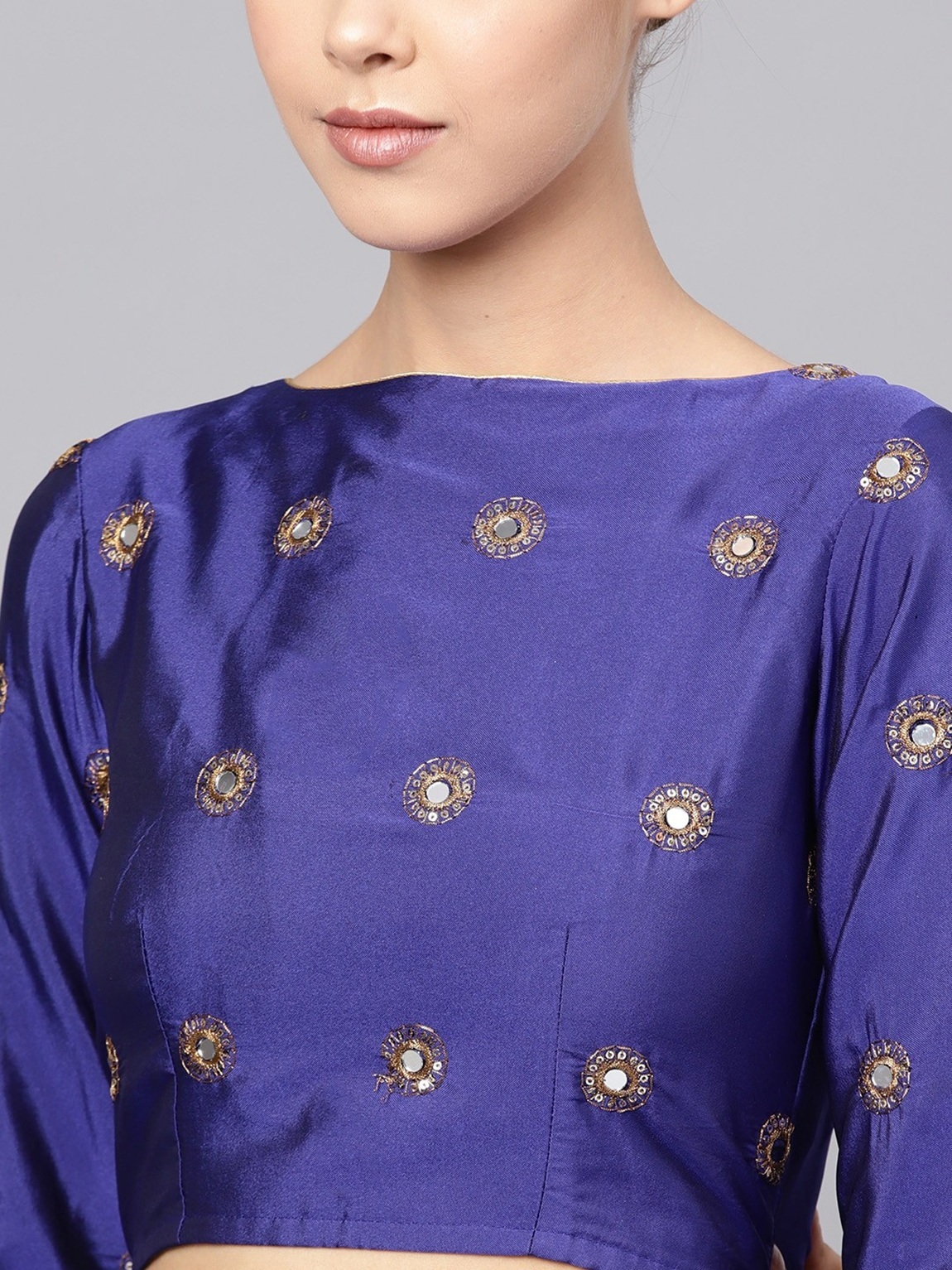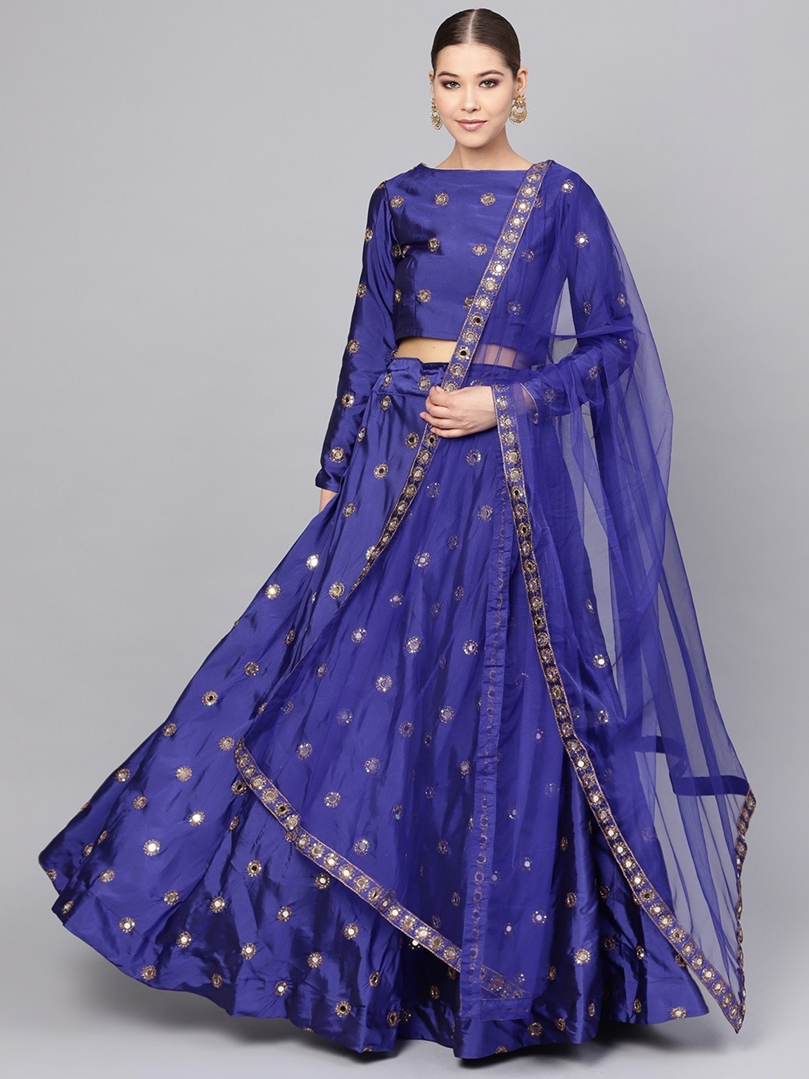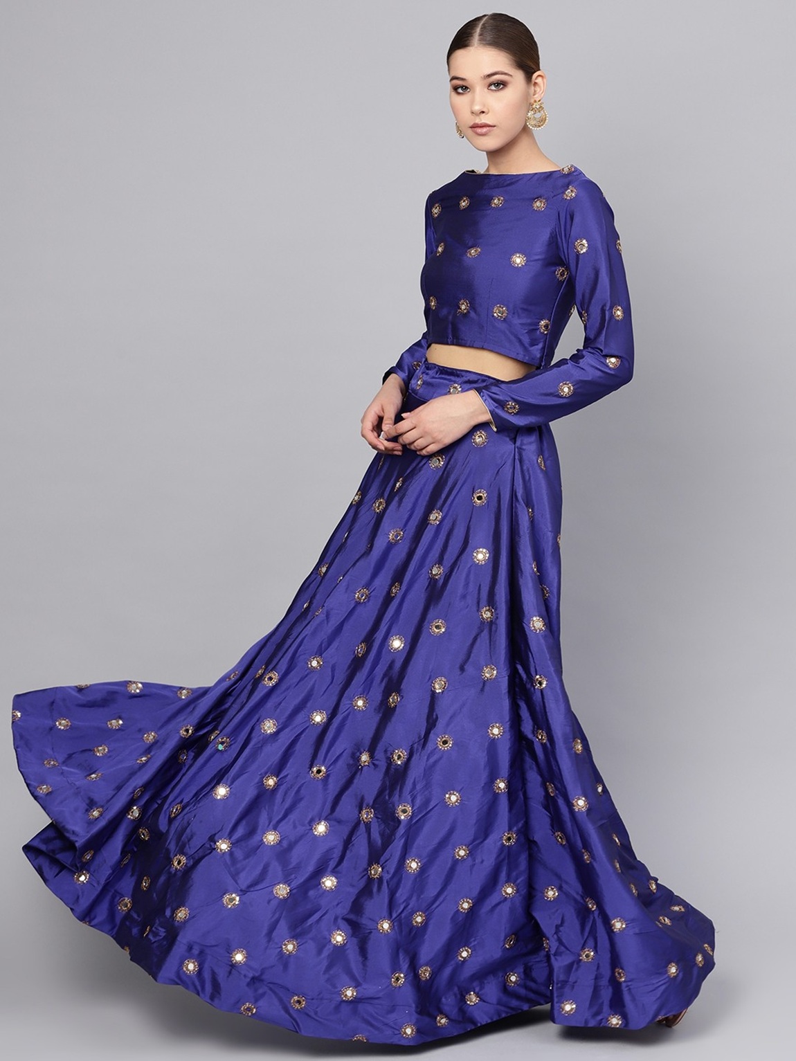 Womens Light Blue Taffeta Mirror Lehenga Set