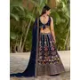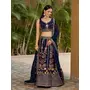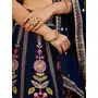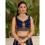 Womens Navy Blue Georgette Thread Embroidery Lehenga Set