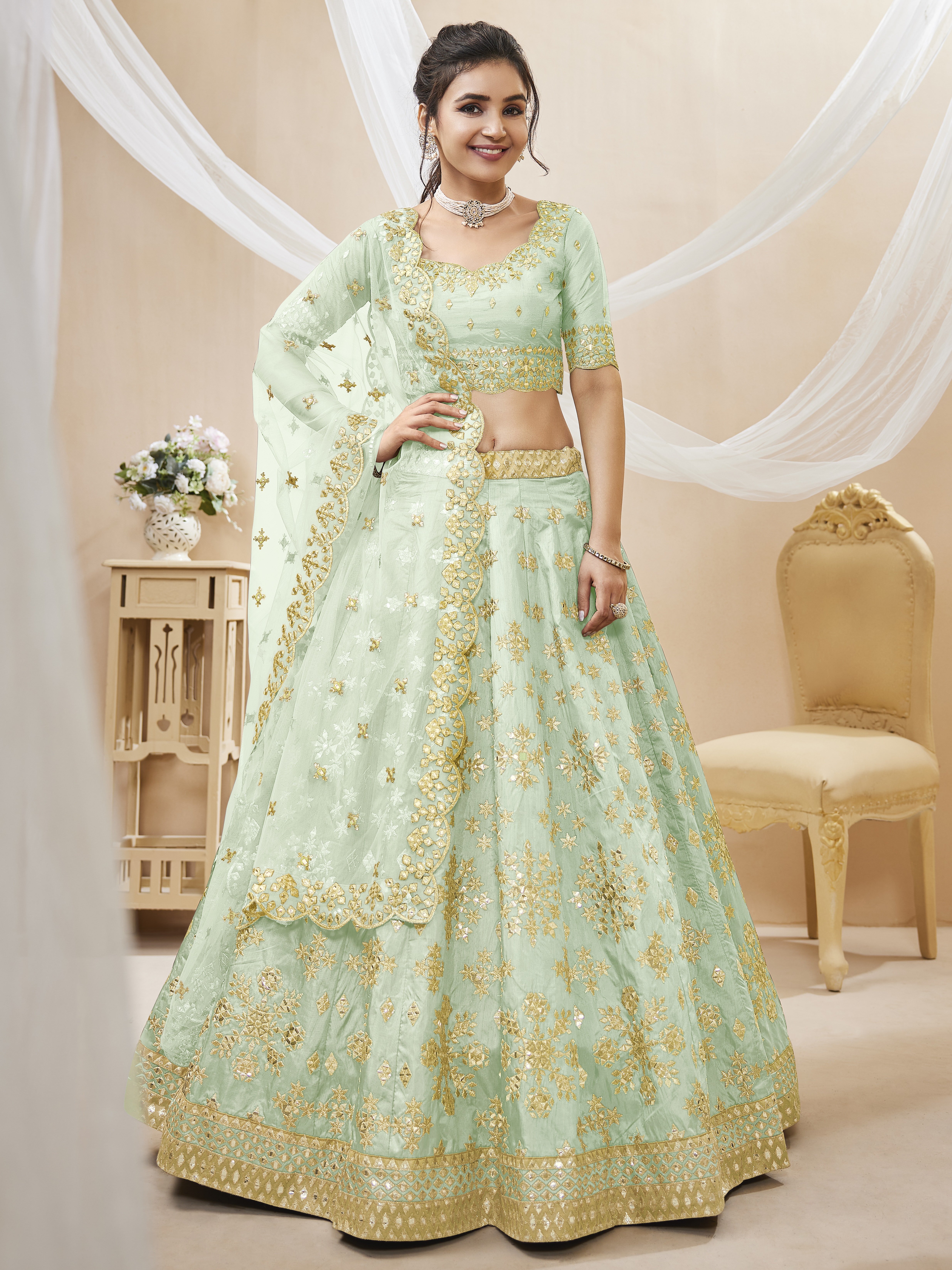 Womens Pista Green Art Silk Embroidered Lehenga Set