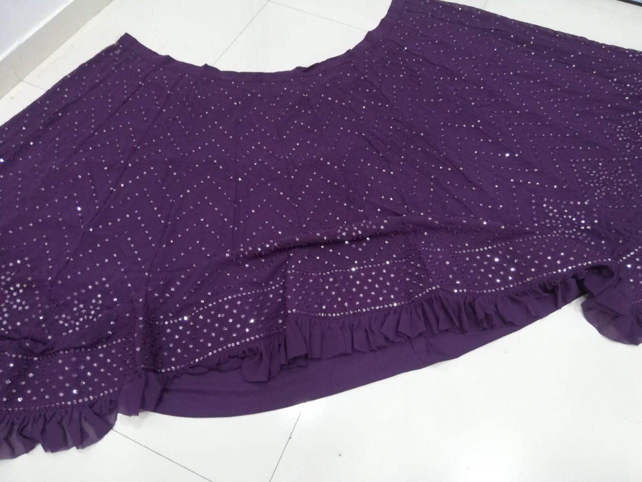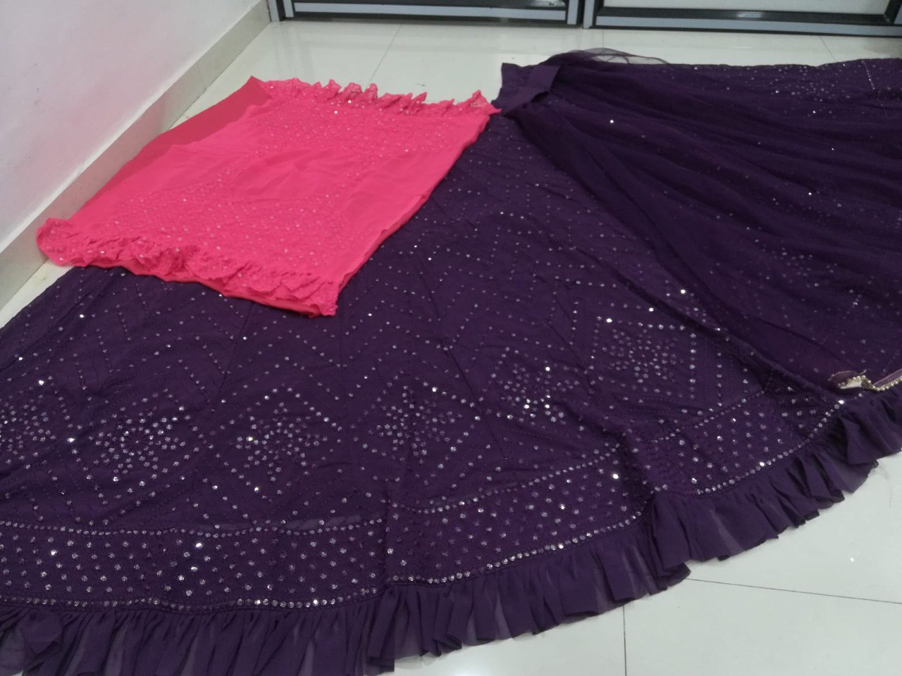 LEHENGA(BOTTOM)FABRIC: - FAUX GEORGETTEINNER: - MICRO FABRICWORK: - 3MM SEQUINS WITH THREAD EMBROIDERY WORKSTITCH: - SEMISTITCHED (WITH CANVAS)SIZE: - 42HEIGHT AND 42WAISTFLAIR: - 3.30 METER FLAIRCOLOR: - PURPLECHOLI(TOP)FABRIC: - FAUX GEORGETTEINNER: - MICROSIZE: - 0.80 METER FABRICWORK: - 3MM SEQUINS WITH THREAD EMBROIDERY WORKSTITCH: - UNSTITCHED FABRICCOLOR: - BARBIE PINKEMBROIDERY WORK SIZE: - FRONT HEIGHT-16 WIDTH-20, , , BACK HEIGHT-16 WIDTH-20, , , DUPATTAFABRIC: - NETSIZE: - 2.25 METER DUPATTASTITCH: - FULL STITCHEDCOLOR: - PURPLEADDITIONALWASH CARE: - DRY CLEAN ONLYCOLOR: - PRODUCT COLOR MAY SLIGHTLY VARY DUE TO PHOTOGRAPHIC LIGHTNING SOURCES OR YOUR DEVICE DISPLAY SETTINGSTHESE ARE MADE TO ORDER DESIGNER STYLES, HENCE EXPECT A SLIGHT VARIATION FROM THE IMAGE DISPLAYEDIN THE BOX 1 PIECE LEHENGA 1 PIECE DUPATTA 1 PIECE BLOUSE FABRIC.