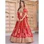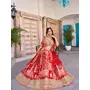 Elevate your ethnic look with this red chinnon lehenga featuring dori embroidery work. Designed for festive occasions and celebrations, it offers a graceful flow and timeless appeal.Crafted from lightweight chinnon fabric with a semi-stitched finish, this lehenga ensures comfort and easy customization. Dry clean recommended.