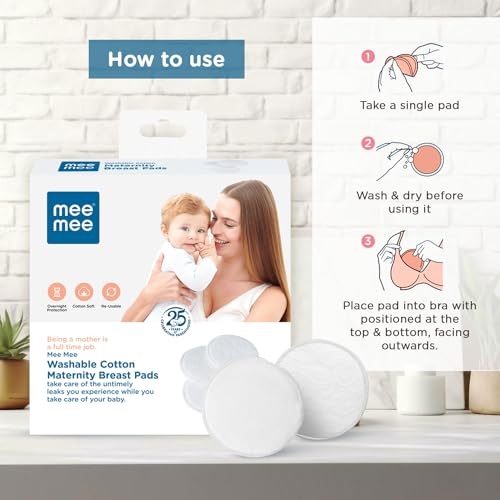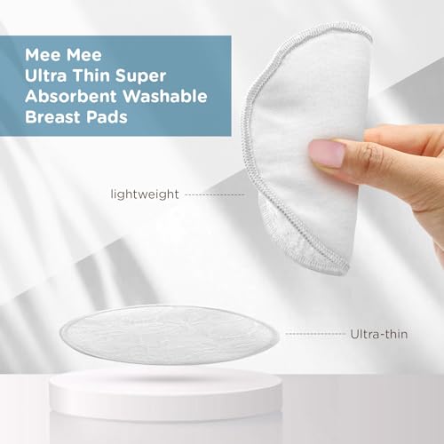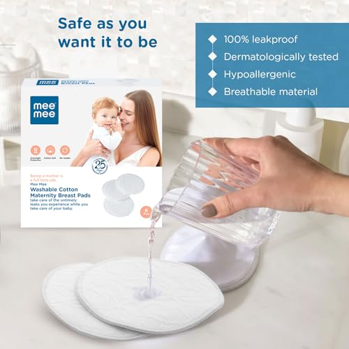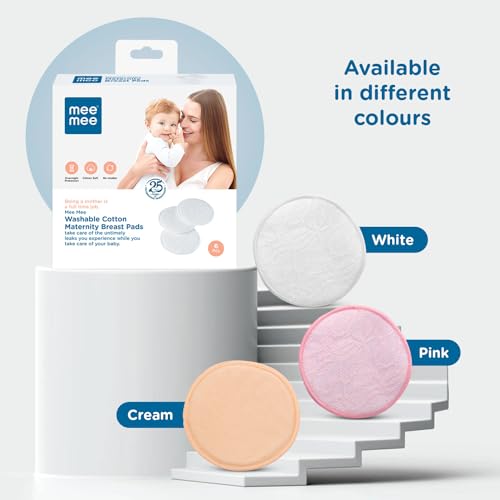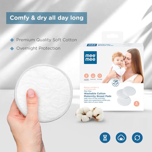 Mee Mee Reusable Cotton Maternity Breast Pads For Feeding Mothers 6 PCS | Washable Bra Pads | Absorbing Nursing Pads, Discreet Fit Nipple Pad, Leak Proof|Anti-Bacterial Dermatologically Tested, Bamboo Rayon Pads (100 Washes, White)