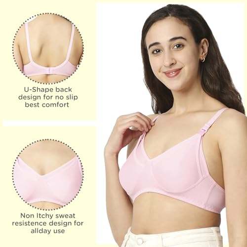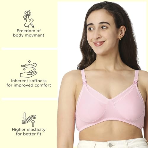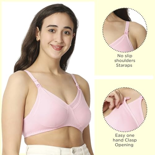 HomeFashionIntimate WearMee Mee Women's 4 Ways Lycra Maternity Bra | Adjustable Straps, Non-Padded, Non-Wired Nursing Bra | Full Cup Feeding Bra | Double Layered Nursing Bra (Pink)