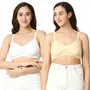 Mee Mee Women's 4 Ways Lycra Maternity Bra | Adjustable Straps, Non-Padded, Non-Wired Nursing Bra | Full Cup Feeding Bra | Post Pregnancy Easy to Breastfeed | Skin and White, Pack of 2