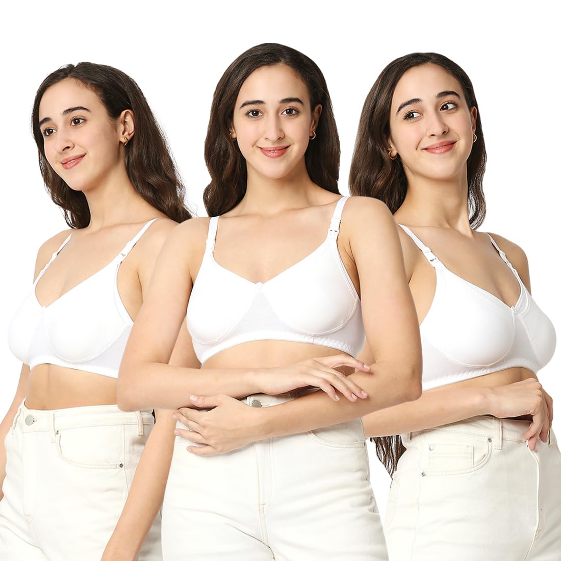 A feeding bra also known as a nursing bra is specially designed to provide comfort support and convenience for breastfeeding mothers. Unlike regular bras it features easy-access panels or cups that can be unclipped or pulled down to allow for quick and discreet breastfeeding or pumping. These bras are essential for new mothers as they make the process of breastfeeding smoother and more comfortable both at home and on the go. Made of 100% cotton with extra-soft elastic for ease of wear Front clasp with drop clip to breastfeed quickly. Non-wired for utmost comfort Equipped with thicker straps broader sides and a deeper center front for complete support Non-wired for utmost comfort Ergonomically designed fabric to aid in breastfeeding. Machine washable. Available in ALL sizes - 34 36 38 116 and cup sizes - B C D and neutral colors to suit your preferences.
