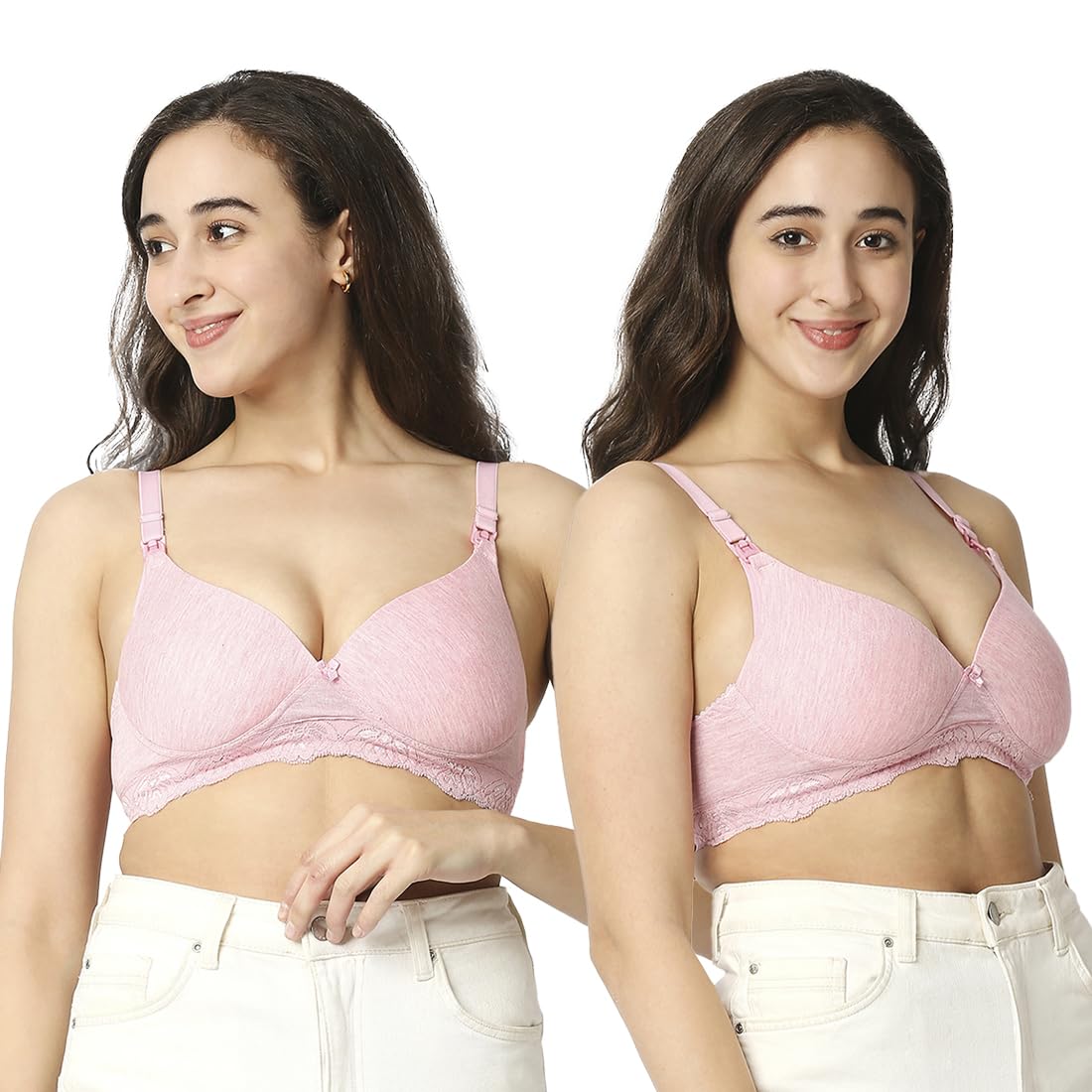 Mee Mee Women's Cotton Non-Padded | Double Layered | Wire Free Maternity Bra | Pink | Pk of 2 |