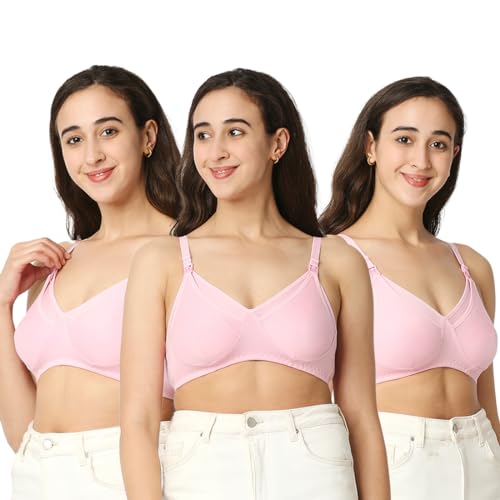 Mee Mee Women's Cotton Non-Padded | Double Layered | Wire Free Maternity Bra | Pink | Pk of 3 |