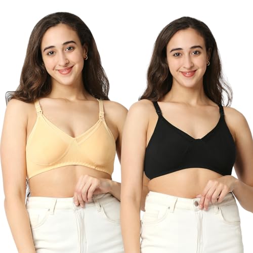 Mee Mee Women's Cotton Non-Padded | Double Layered | Wire Free Maternity Bra | Skin, Black | Pk of 2 |
