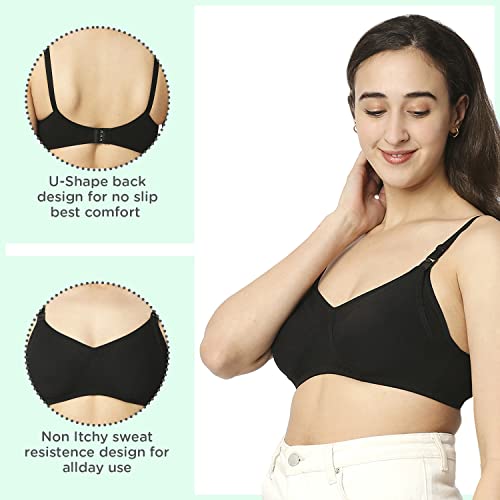Mee Mee Women's Cotton Non-Padded | Double Layered | Wire Free Maternity Bra | Skin, Black | Pk of 2 |