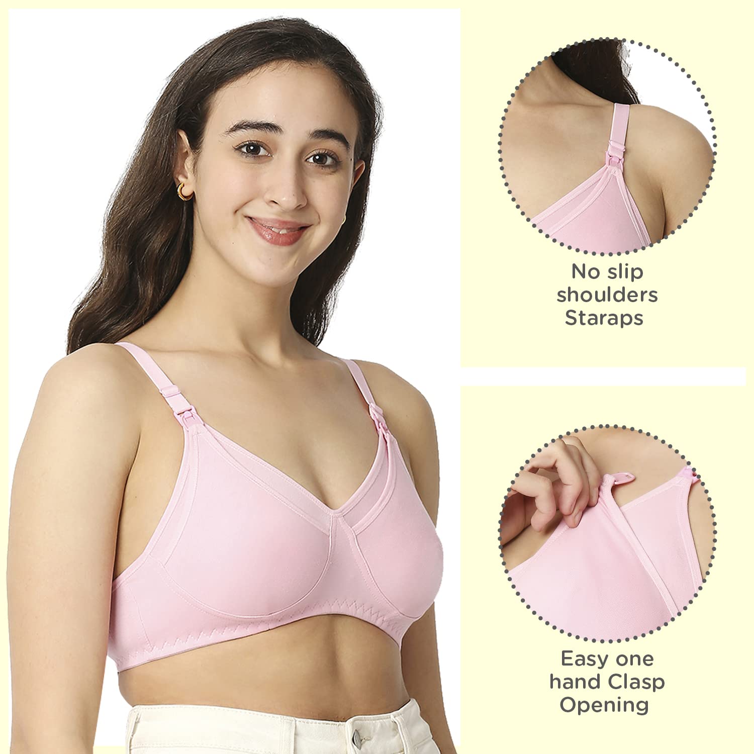 Mee Mee Women's Cotton Non-Padded | Double Layered | Wire Free Maternity Bra | Skin, Pink | Pk of 2 |