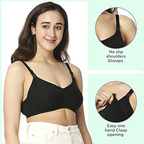 Mee Mee Women's Cotton Non-Padded Wire Free Maternity Bra | Black | Pk of 2 |