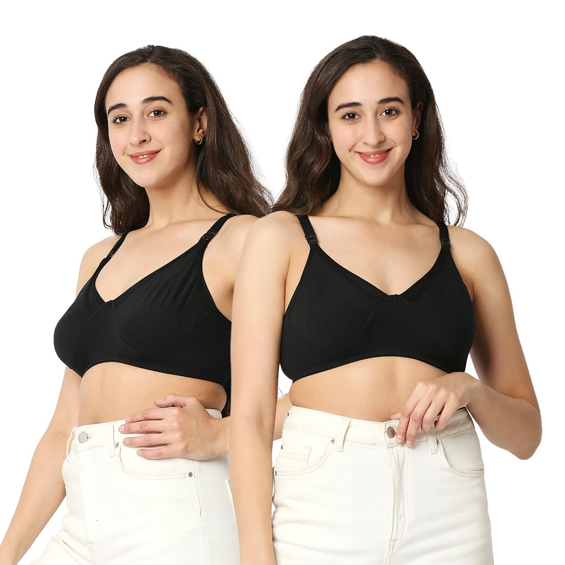 Mee Mee Women's Cotton Non-Padded Wire Free Maternity Bra | Black | Pk of 2 |