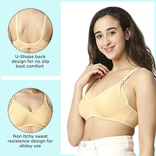 Made of 100% cotton with extra-soft elastic for ease of wear Front clasp with drop clip to breastfeed quickly. Non-wired for utmost comfort Equipped with thicker straps broader sides and a deeper center front for complete support Non-wired for utmost comfort Ergonomically designed fabric to aid in breastfeeding. Machine washable. Double layer fabric in the cups protects and provides care for milk ducts mammary glands & areola region. Inner seams keep breasts firm & help maintain shape. Available in ALL sizes - 34 36 38 40 and cup sizes - B C D and neutral colours to suit your preferences