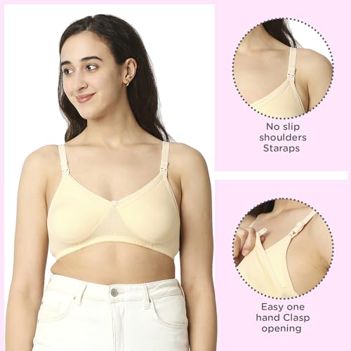 Mee Mee Women's Cotton Soft Maternity Bra | Adjustable Straps, Non-Padded, Non-Wired Nursing Bra | Full Cup Feeding Bra | Post Pregnancy Easy to Breastfeed (Skin, Pack of 2)