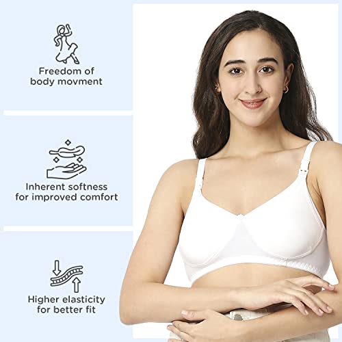 A feeding bra also known as a nursing bra is specially designed to provide comfort support and convenience for breastfeeding mothers. Unlike regular bras it features easy-access panels or cups that can be unclipped or pulled down to allow for quick and discreet breastfeeding or pumping. These bras are essential for new mothers as they make the process of breastfeeding smoother and more comfortable both at home and on the go. Made of 100% cotton with extra-soft elastic for ease of wear Front clasp with drop clip to breastfeed quickly. Non-wired for utmost comfort Equipped with thicker straps broader sides and a deeper center front for complete support Non-wired for utmost comfort Ergonomically designed fabric to aid in breastfeeding. Machine washable. Available in ALL sizes - 34 36 38 161 and cup sizes - B C D and neutral colors to suit your preferences.