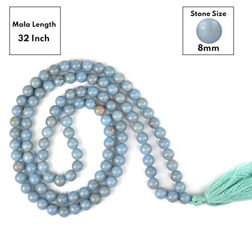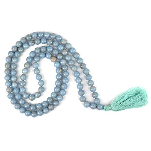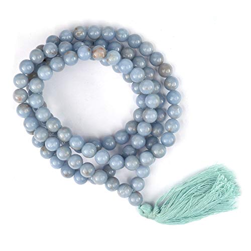 AAA Angelite Mala Natural Crystal Stone 8 mm 108 Round Bead Jap Mala for Reiki Healing and Crystal Healing Stone (Color : Light Blue)