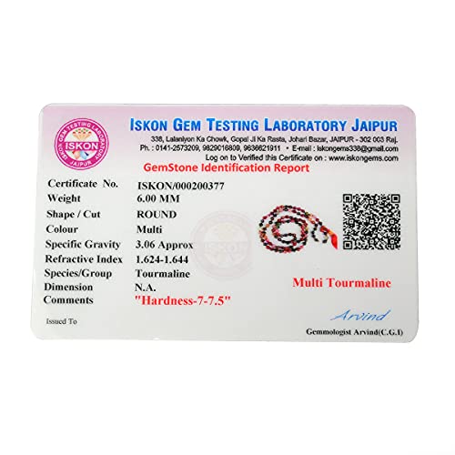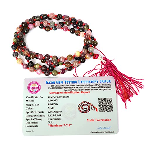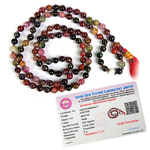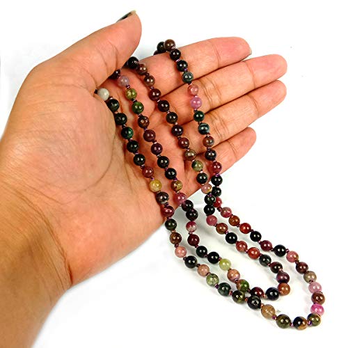 Certified Natural Multi Tourmaline Mala Semi Precious Crystal Stone 6 mm 108 Beads Jap Mala / Necklace for Reiki Healing Stones (Color : Multi)