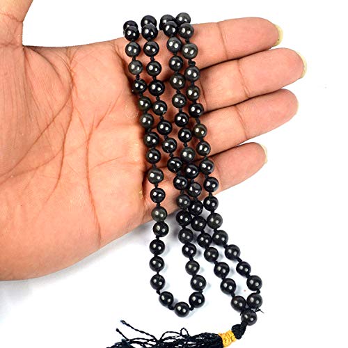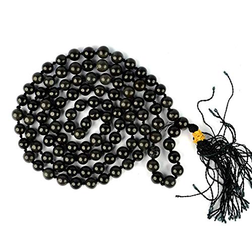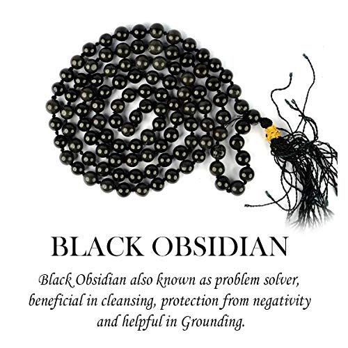 • Hand Made Natural Crystal Stone Black Obsidian Mala
