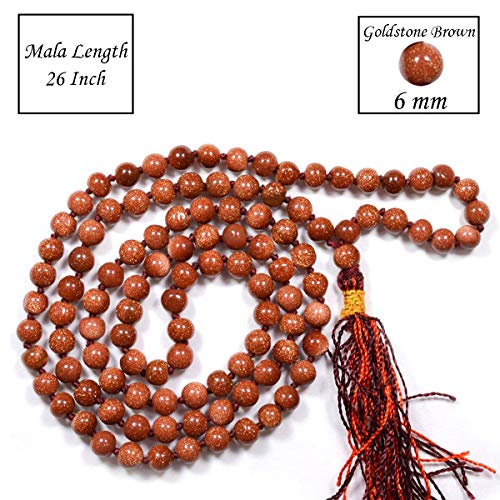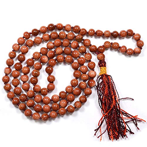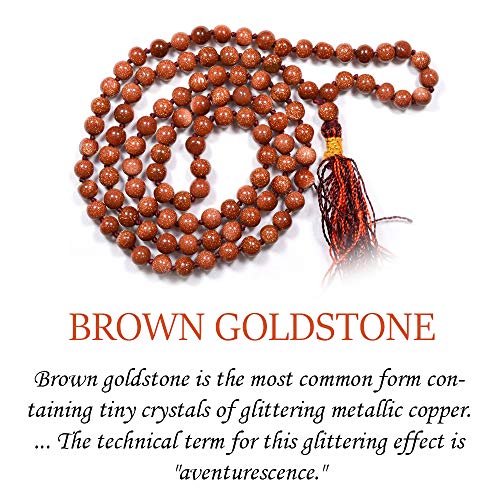• Hand Made Natural Crystal Stone Goldstone Brown Mala