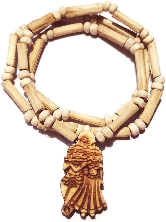 MAYAPURI Original Tulsi Kanthi Mala With Radha Krishna Pendant Locket For Neck, Adults Unisex Adult, Tulsi Wood, No Gemstone