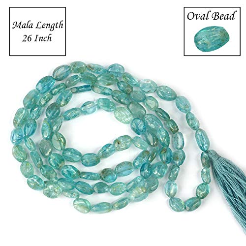 Hand Made Natural Crystal Stone Apatite Mala / Necklace | Length : 26 Inch. | Shape : Oval | Charged By Reiki Grand Master & Vastu Expert