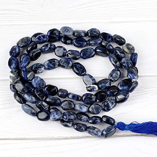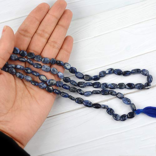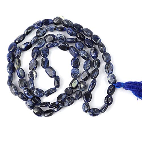Natural Sodalite Mala Crystal Stone Oval Bead Mala for Reiki Healing Stone (Color : Blue)