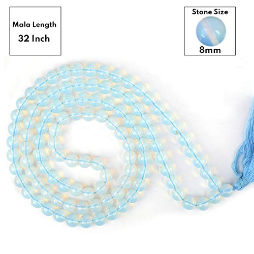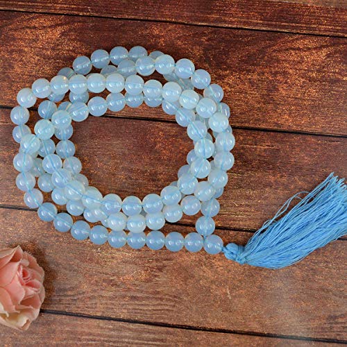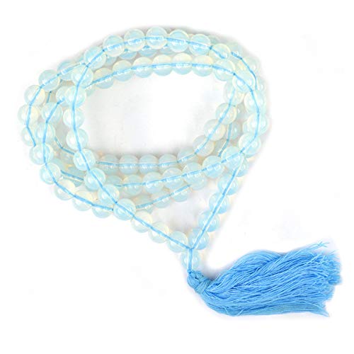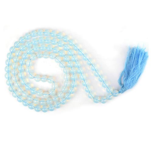 Opalite Mala Natural Crystal Stone 8 mm 108 Round Bead Jap Mala for Reiki Healing and Crystal Healing Stone (Color : Llight Blue)