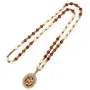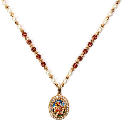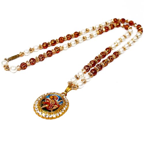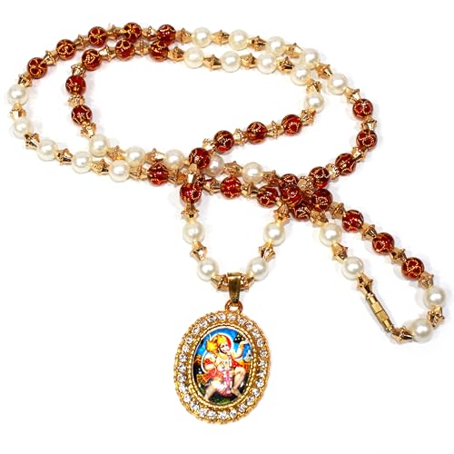 Red-White Bead Chain Mala with detachable Bhagwan Hanuman ji pendent. Chain Mala Can Wear With Pendent or Without Pendant. 32 Inch Chain With Barrel Clasp.