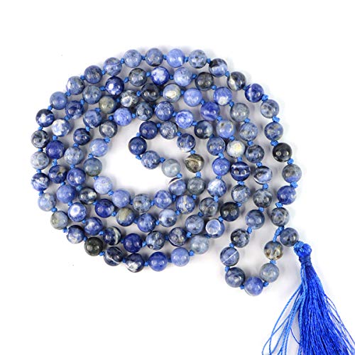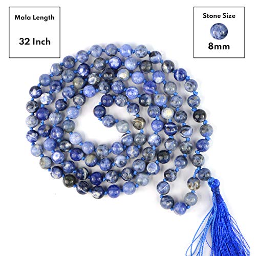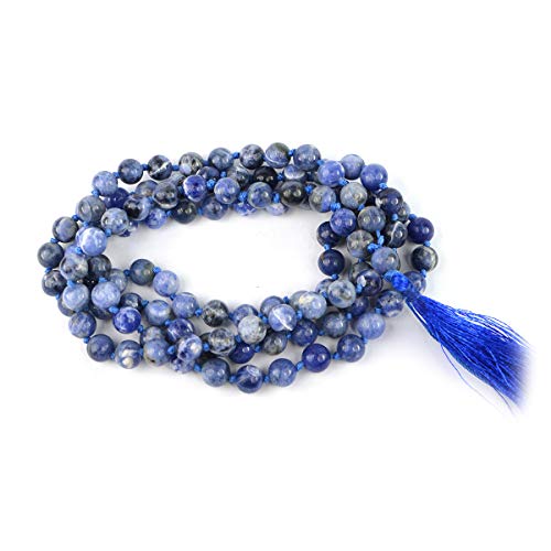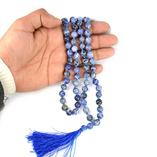 Sodalite Mala Natural Crystal Stone 8 mm 108 Round Bead Jap Mala for Reiki Healing and Crystal Healing Stone (Color : Blue)