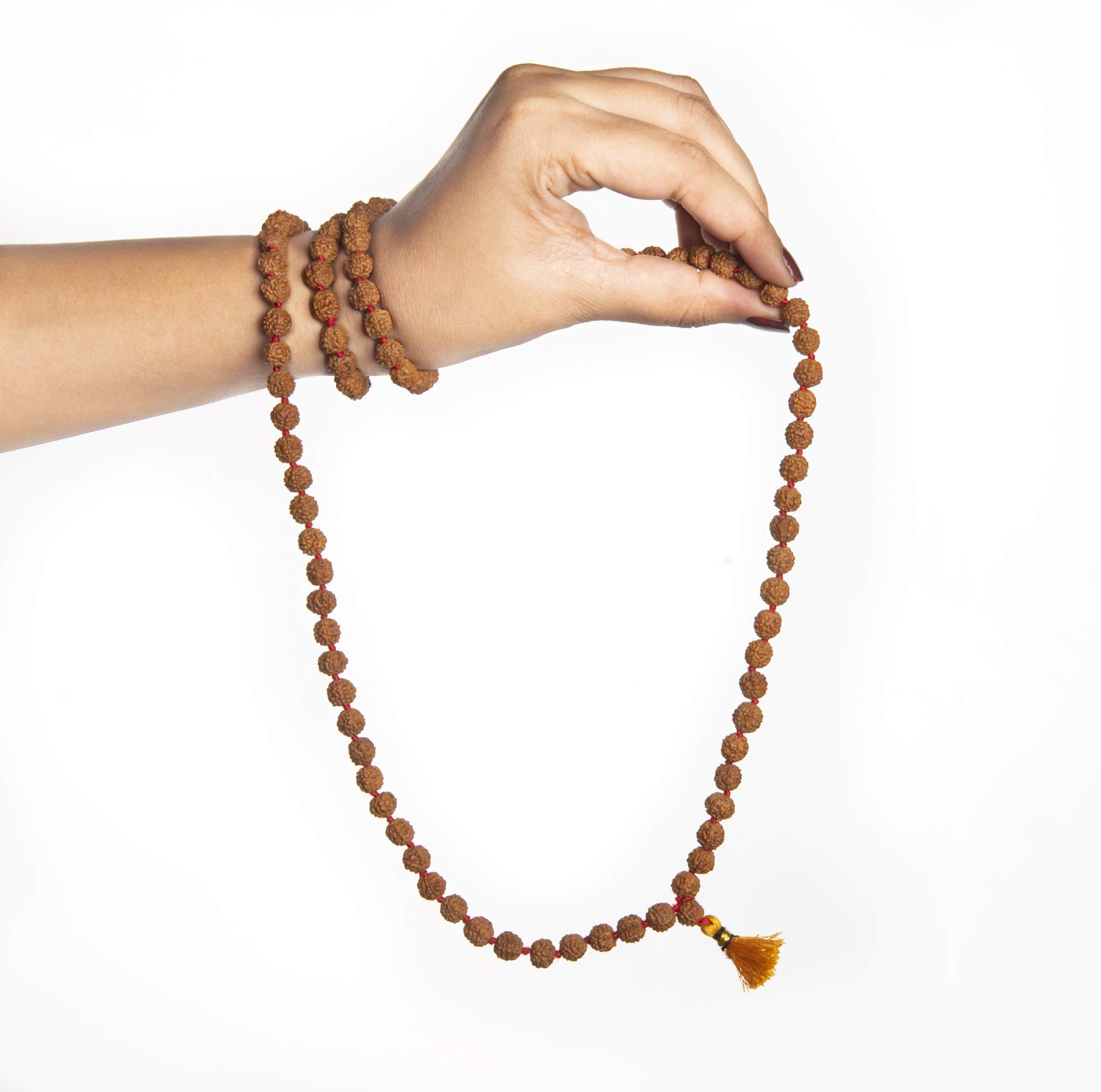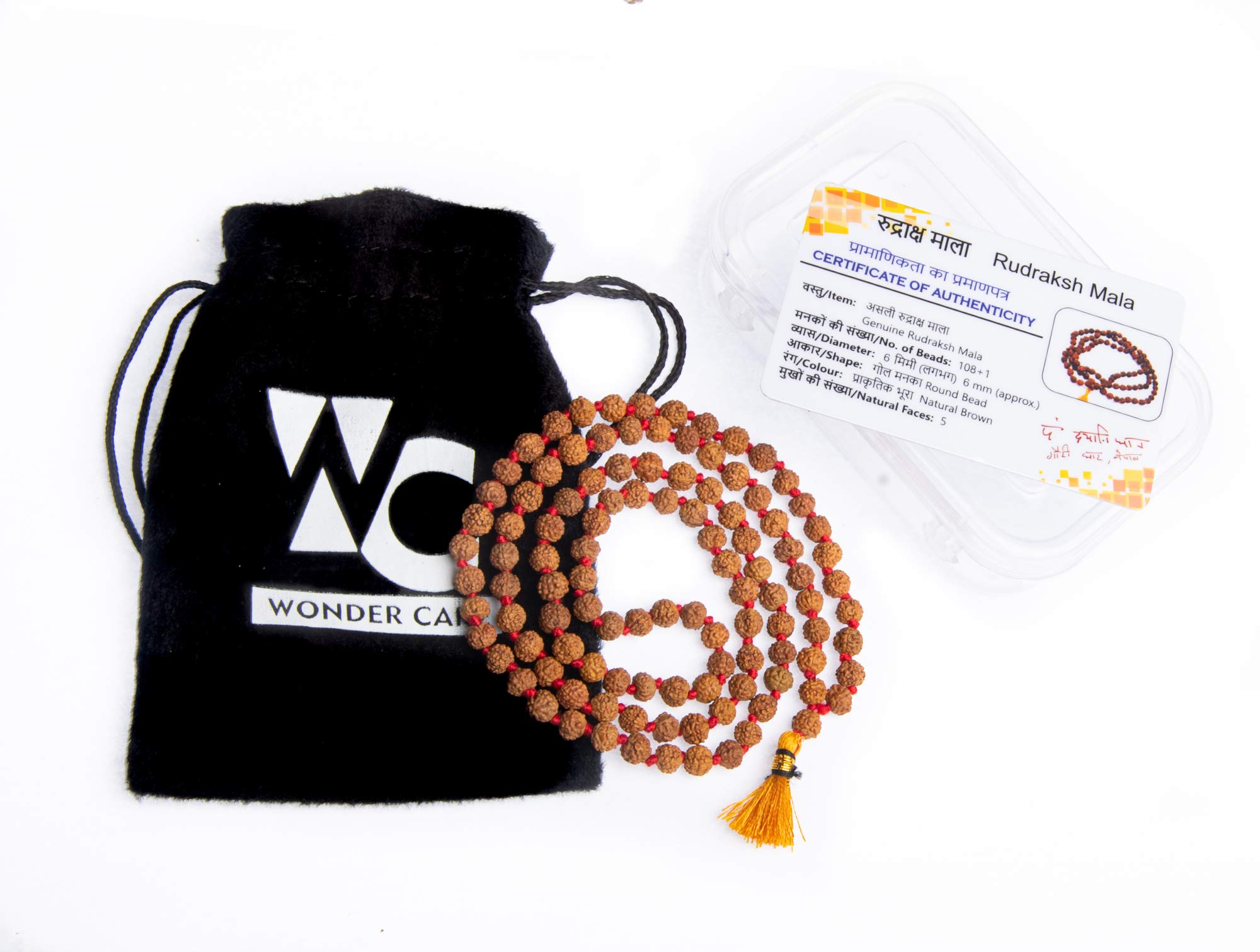 Wonder Care Rudraksha Mala-Panchmukhi (5 Mukhi) Rudraksha Mala 108 Beads For Unisex Adult with Certificate (Brown) 8-mm Beads Sized