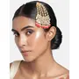 Gold Plated Kundan Studded With Pearl Passa - DIMENSION: Passa Length - 13 Cm X Width - 7 Cm. This maang tikka/passa is crafted in 18k gold-plating and features kundan studded in it and secured with a hook closure. Style this as maang tikka or passa with your ethnic attires to complete the look. Perfect Accessory for your jewellery box!