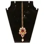 New! Touchstone Indian Bollywood Traditional Floral Paisley Mughal Kundan Look Faux Ruby Designer Jewelry Mangtika Head Accessory in Antique Gold Tone. for Women.