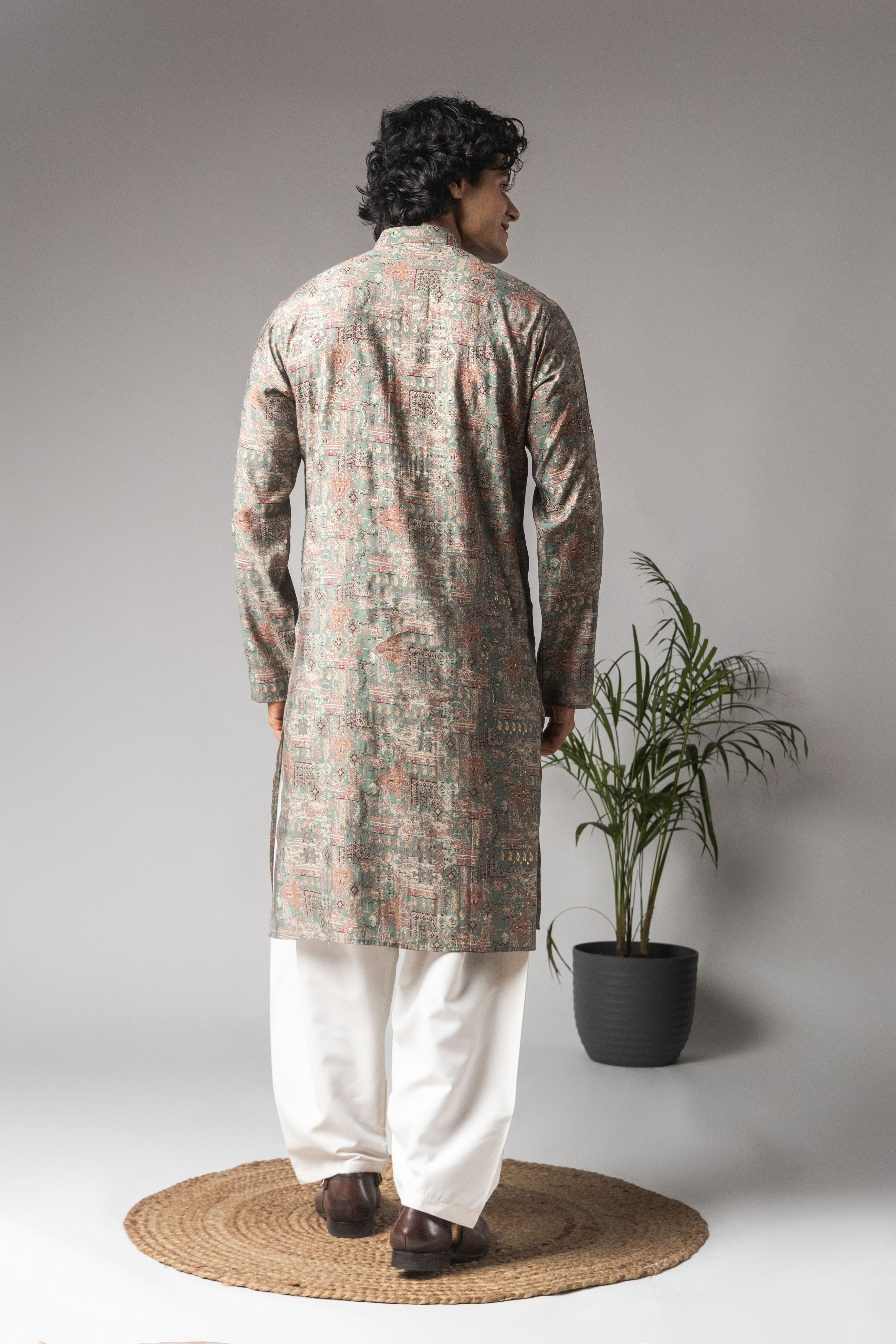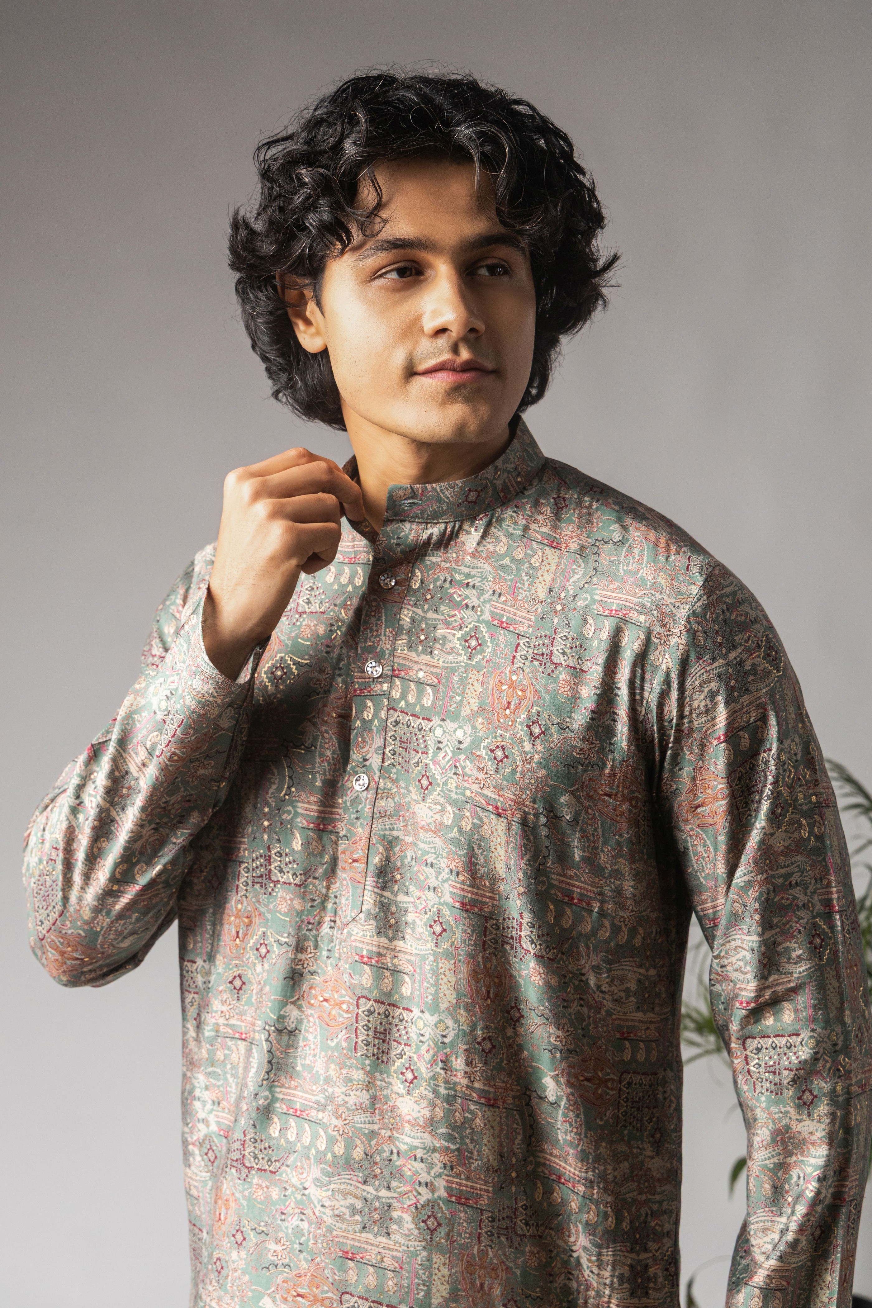 Ash Green Color Modal Silk Fabric Designer Ceremonial Kurta Payjama For Men's