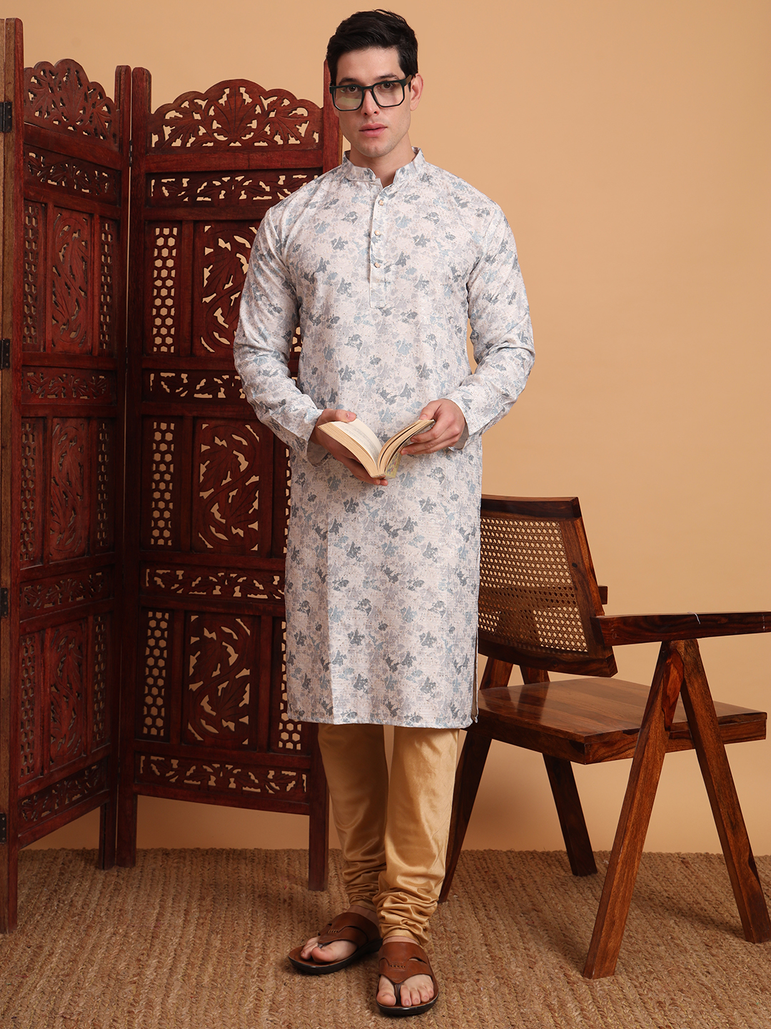Beautiful Grey Color Smart Printed Men's Festive Wear Kurta