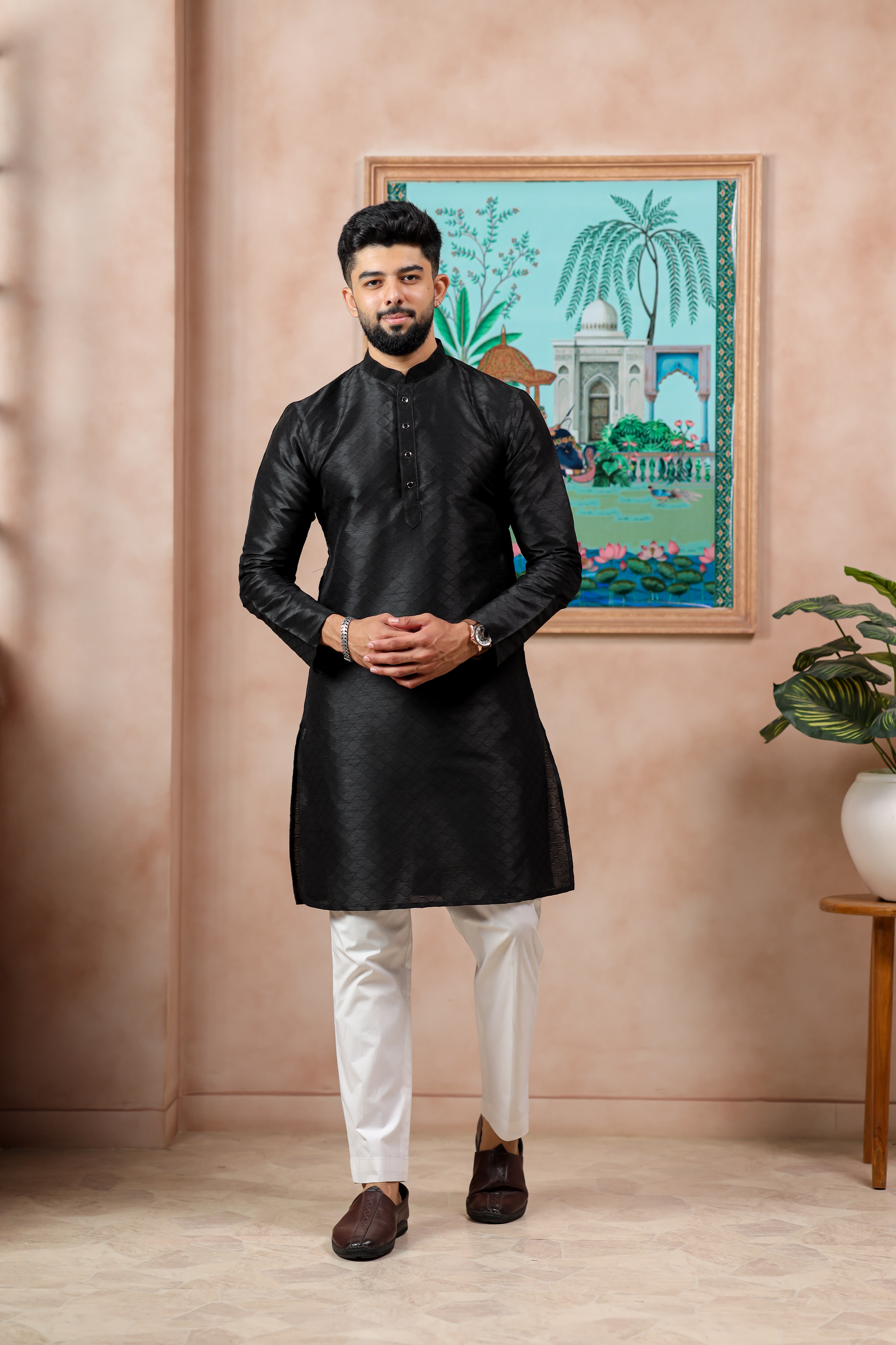 Black Color Graceful Partywear Kurta Payjama For Mens Ceremonial Looks