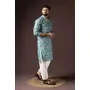 Cyan Blue Color Beautiful Printed Blended Cotton Fabric Ceremonial Men's Kurta Payjama