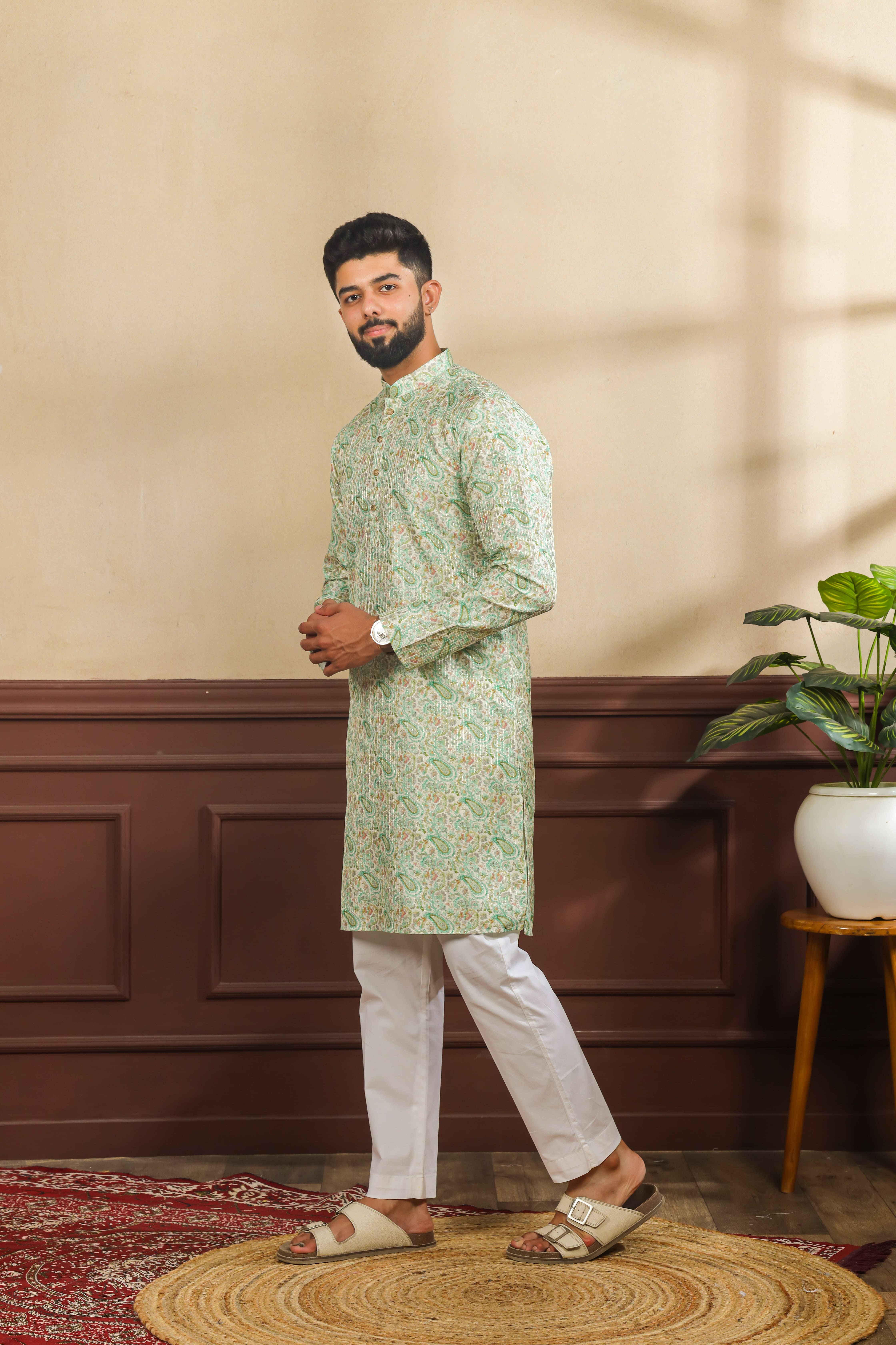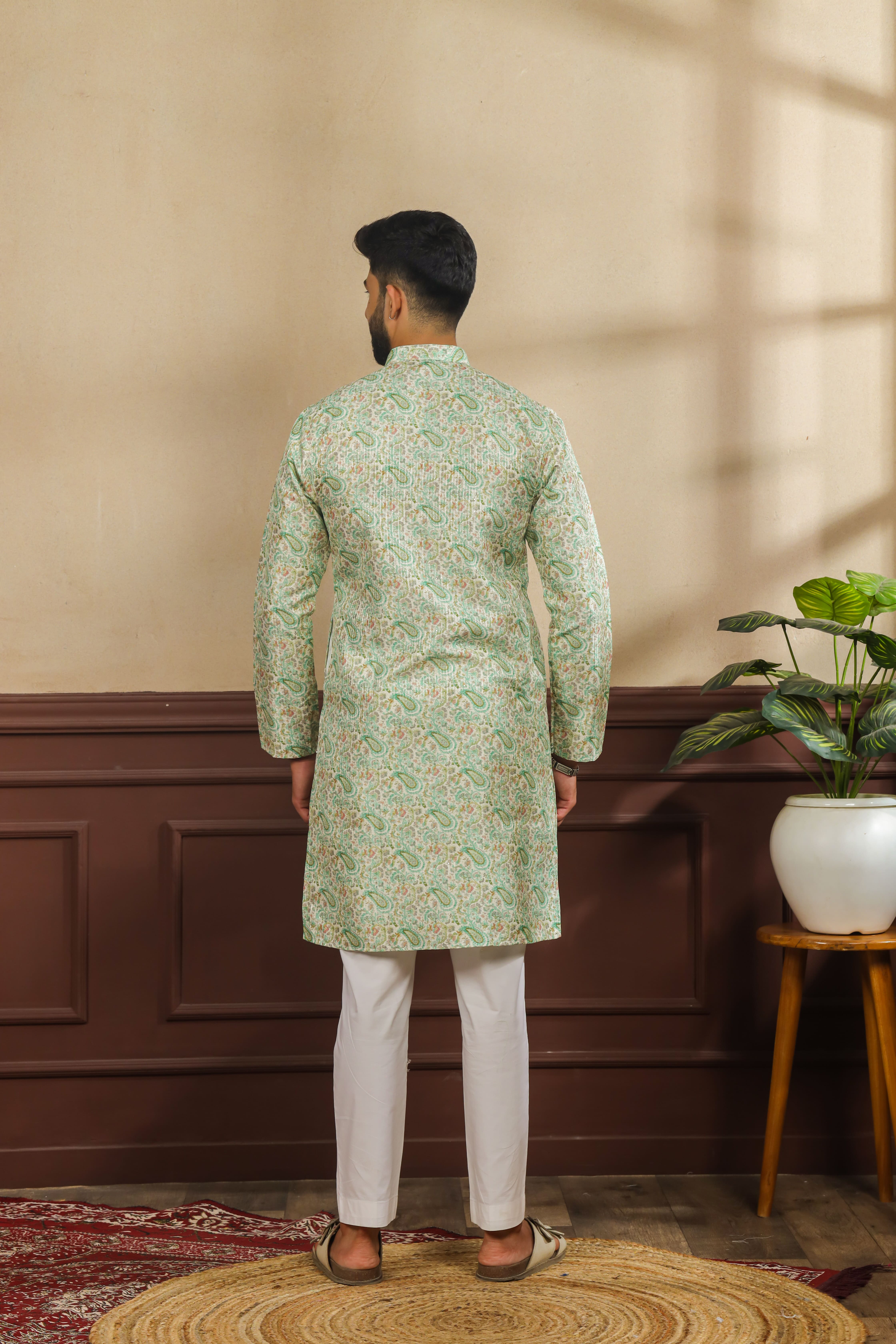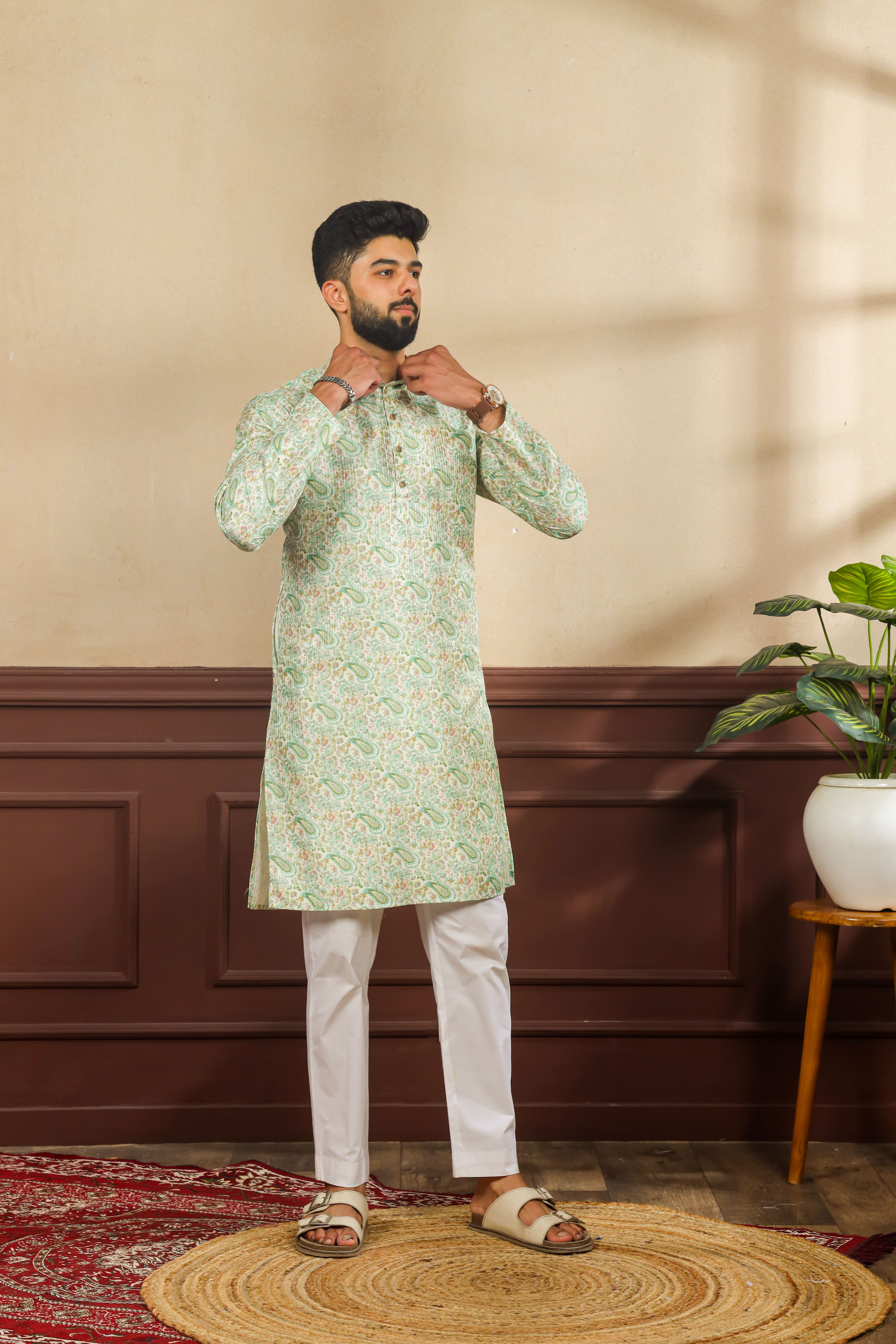 Green Color Beautiful Art Silk Fabric Smart Print Designer Kurta Payjama
