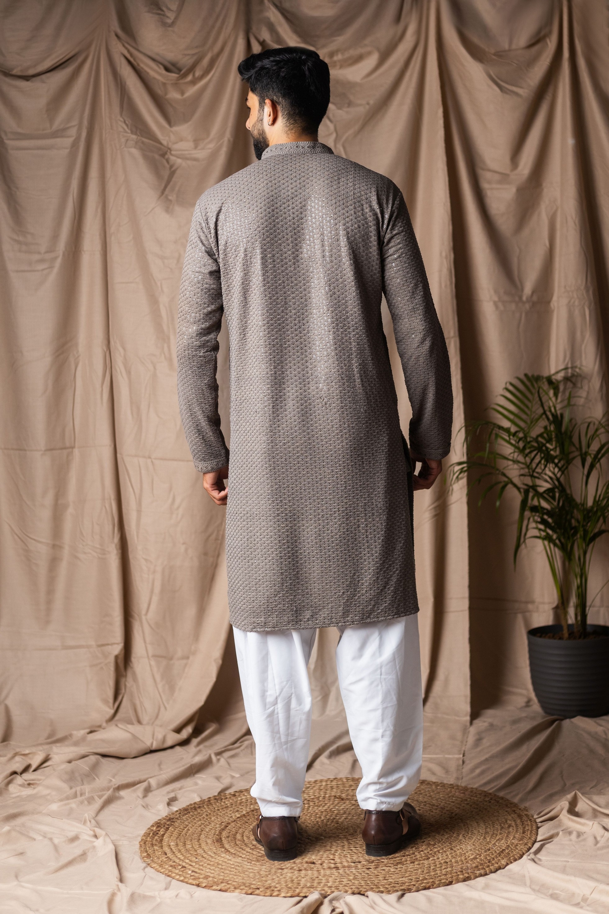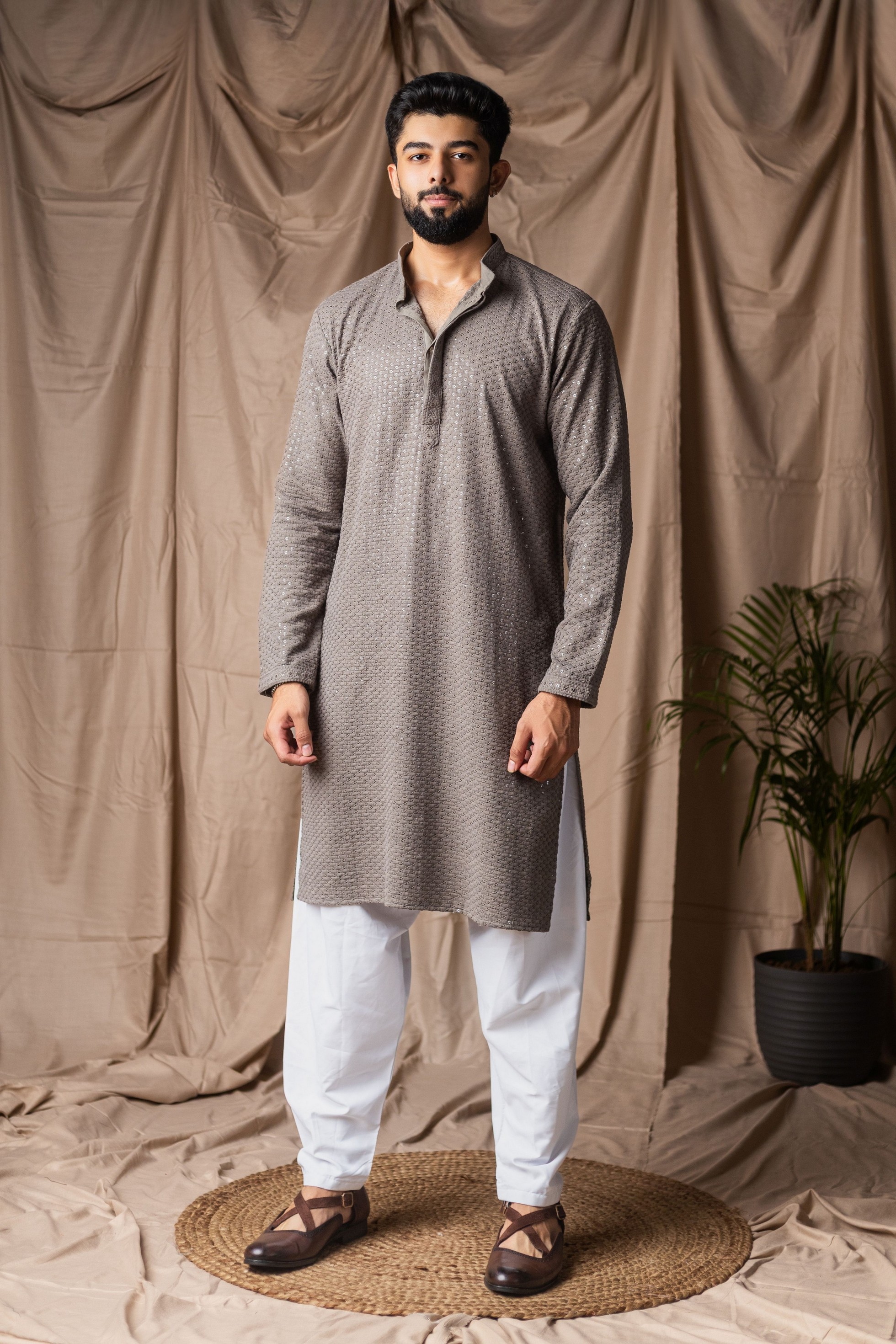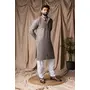 Grey Color Beautiful Thread Embroidery Work Rayon Fabric Ceremonial Men's Kurta Payjama